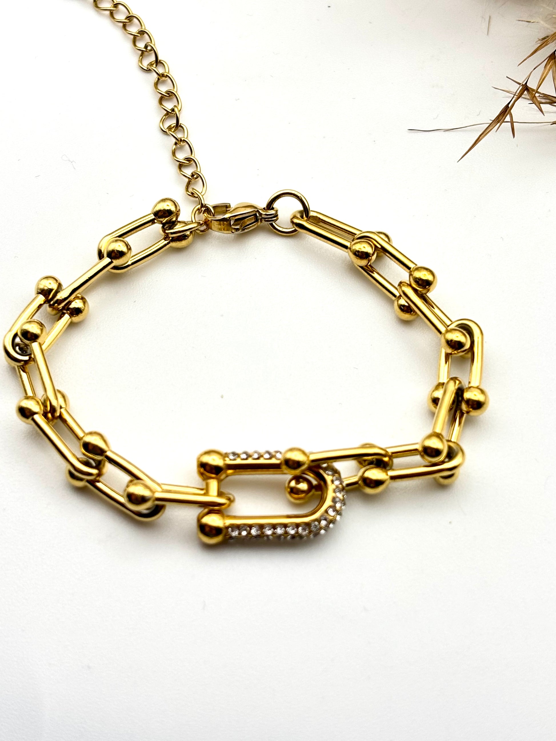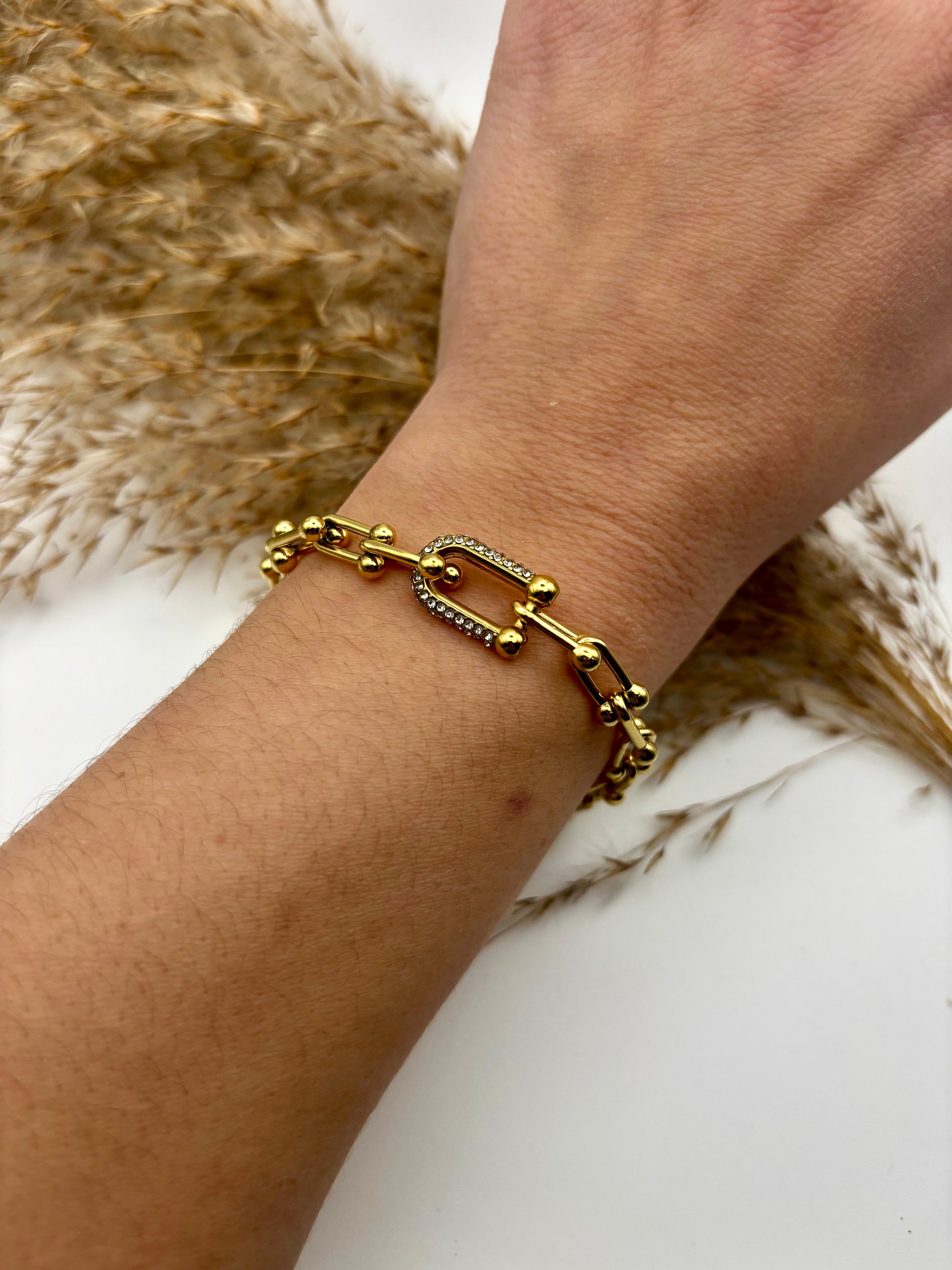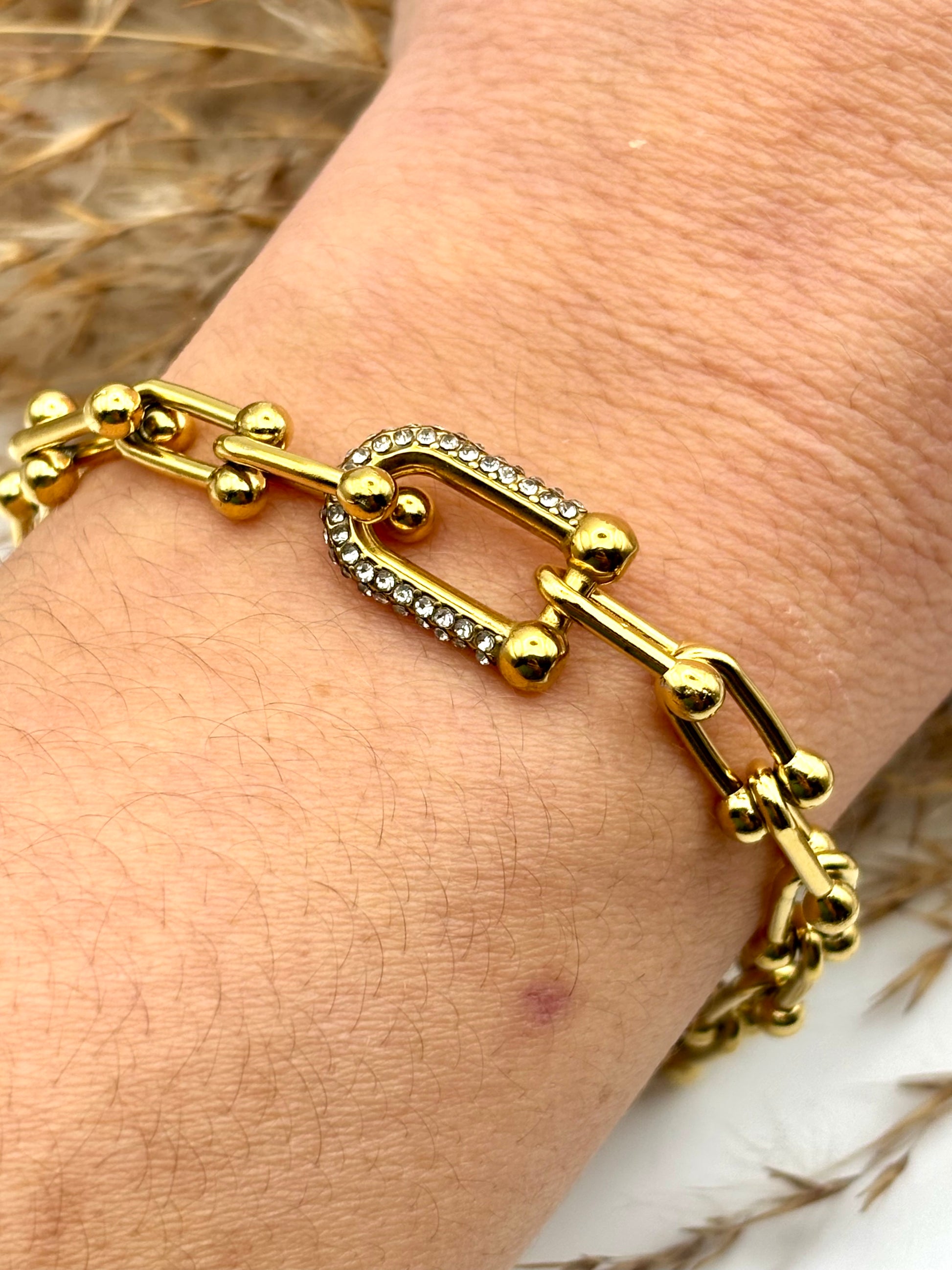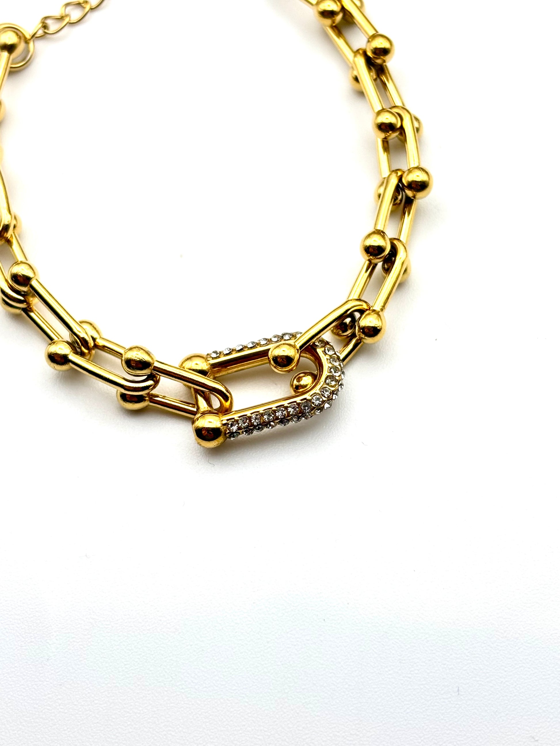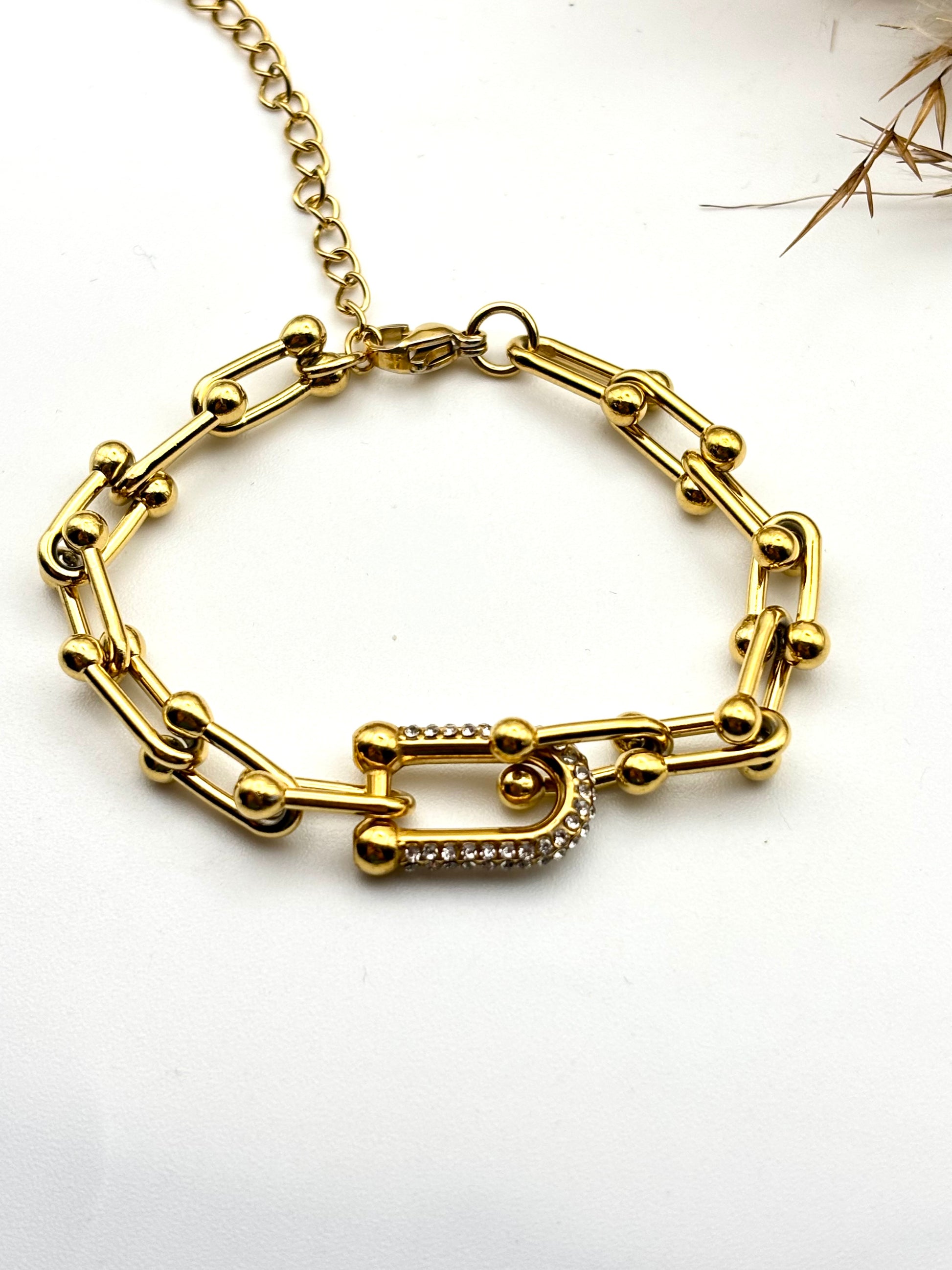 Ατσάλινο βραχιόλι χρώμα χρυσό με υπέροχο διακοσμητικό με Ζιργκον συνδετικό στη μέση!!