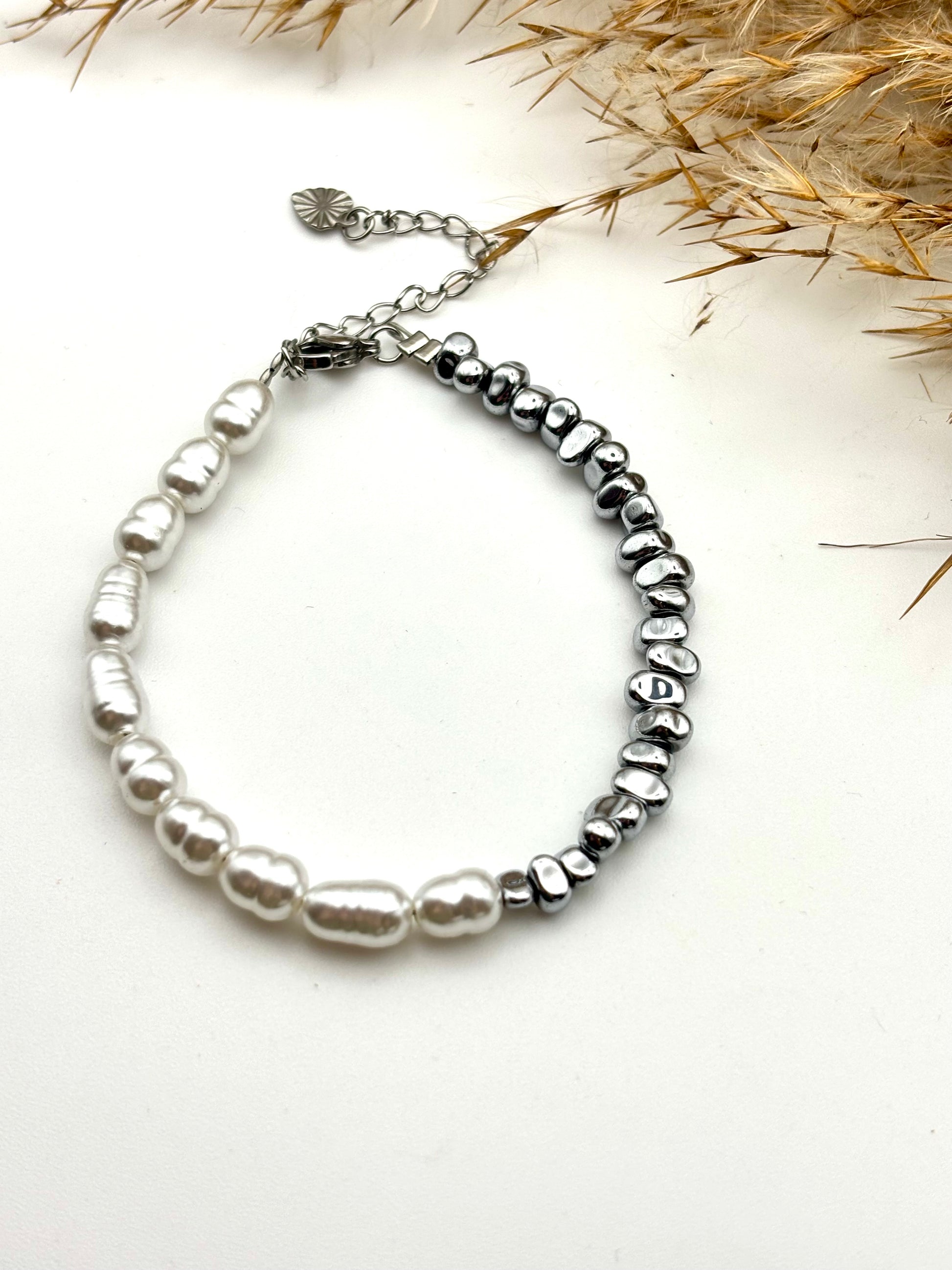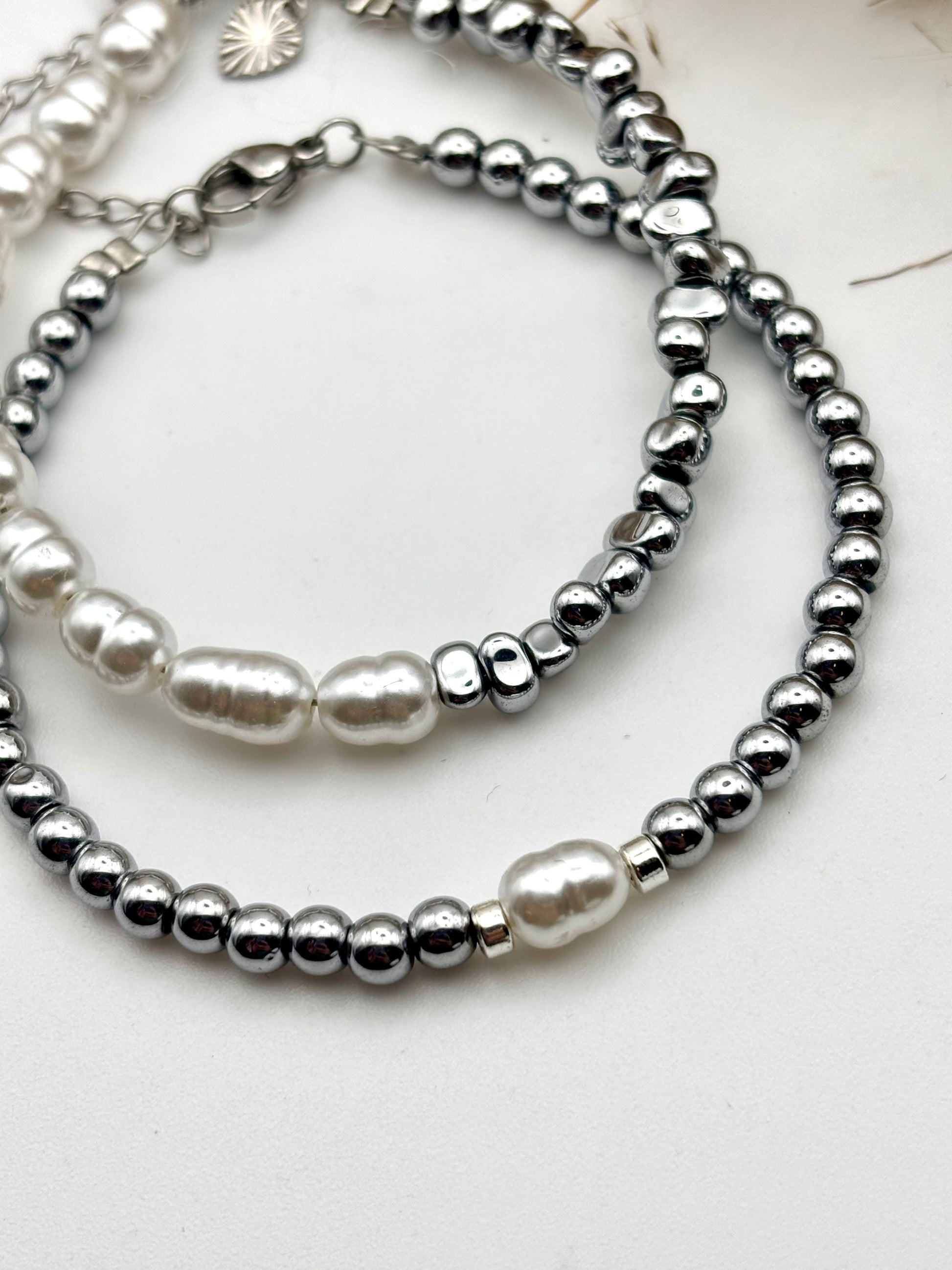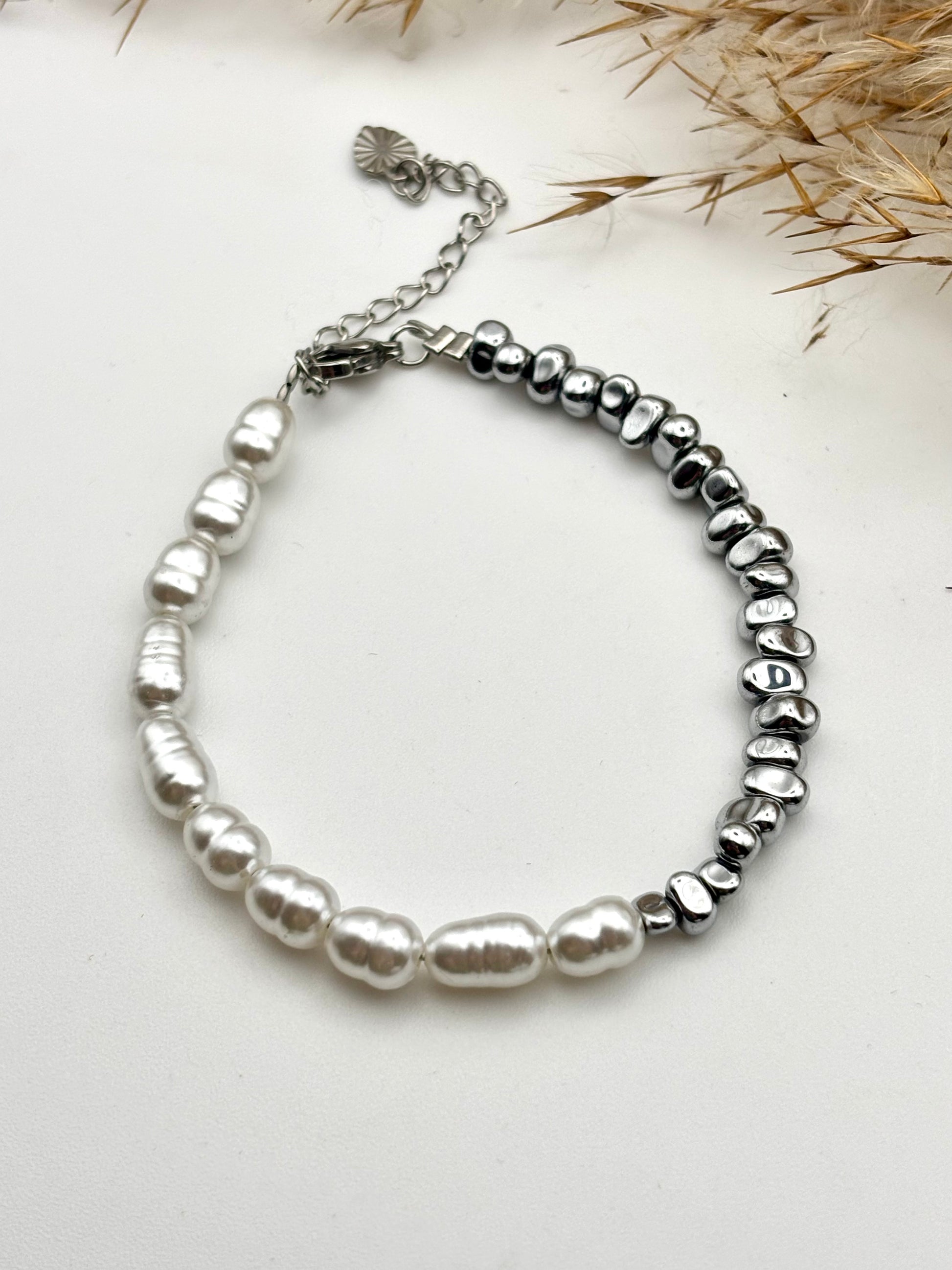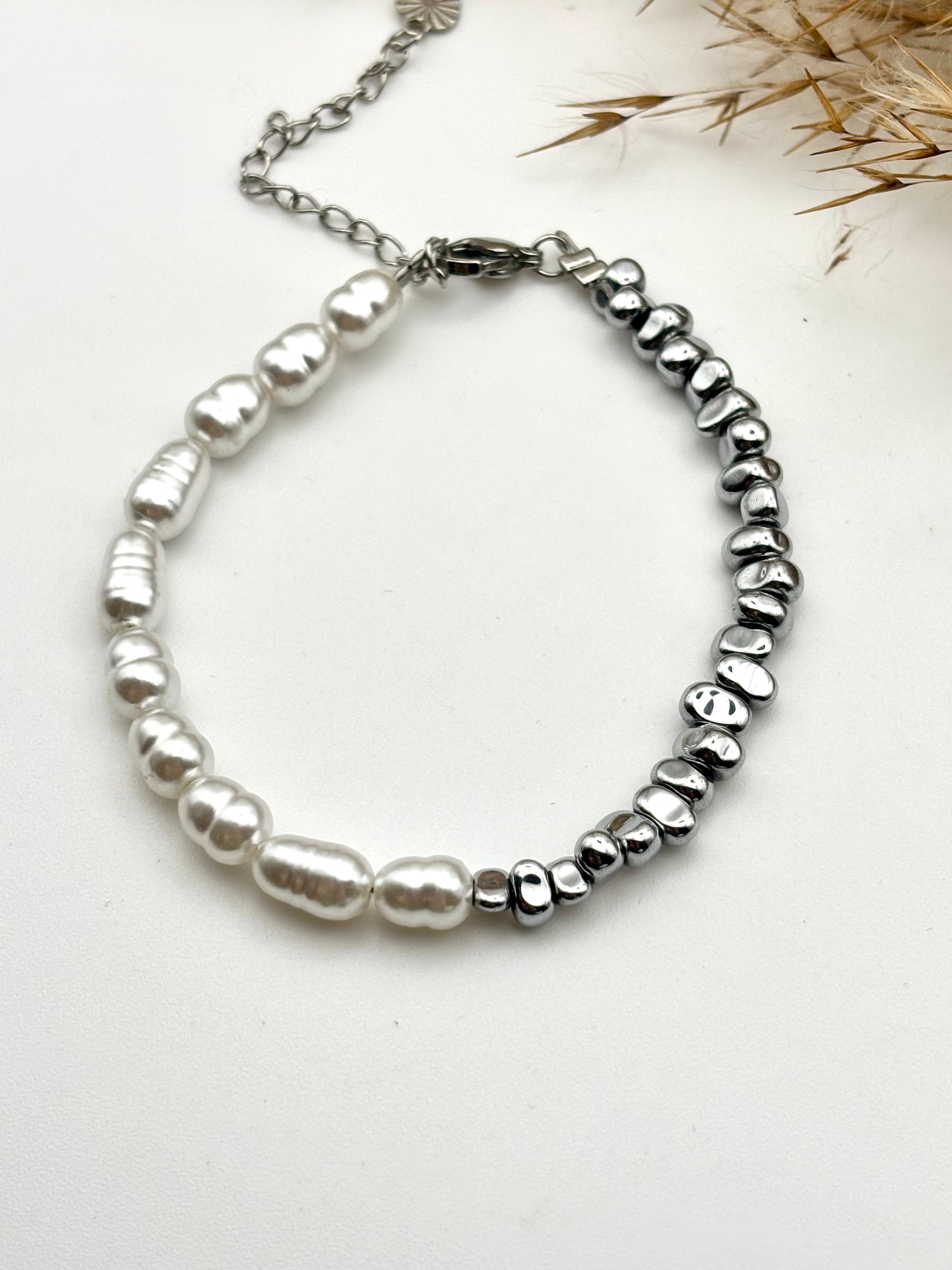 Χειροποίητο βραχιόλι από αιματίτη και λευκές πέρλες by SJ