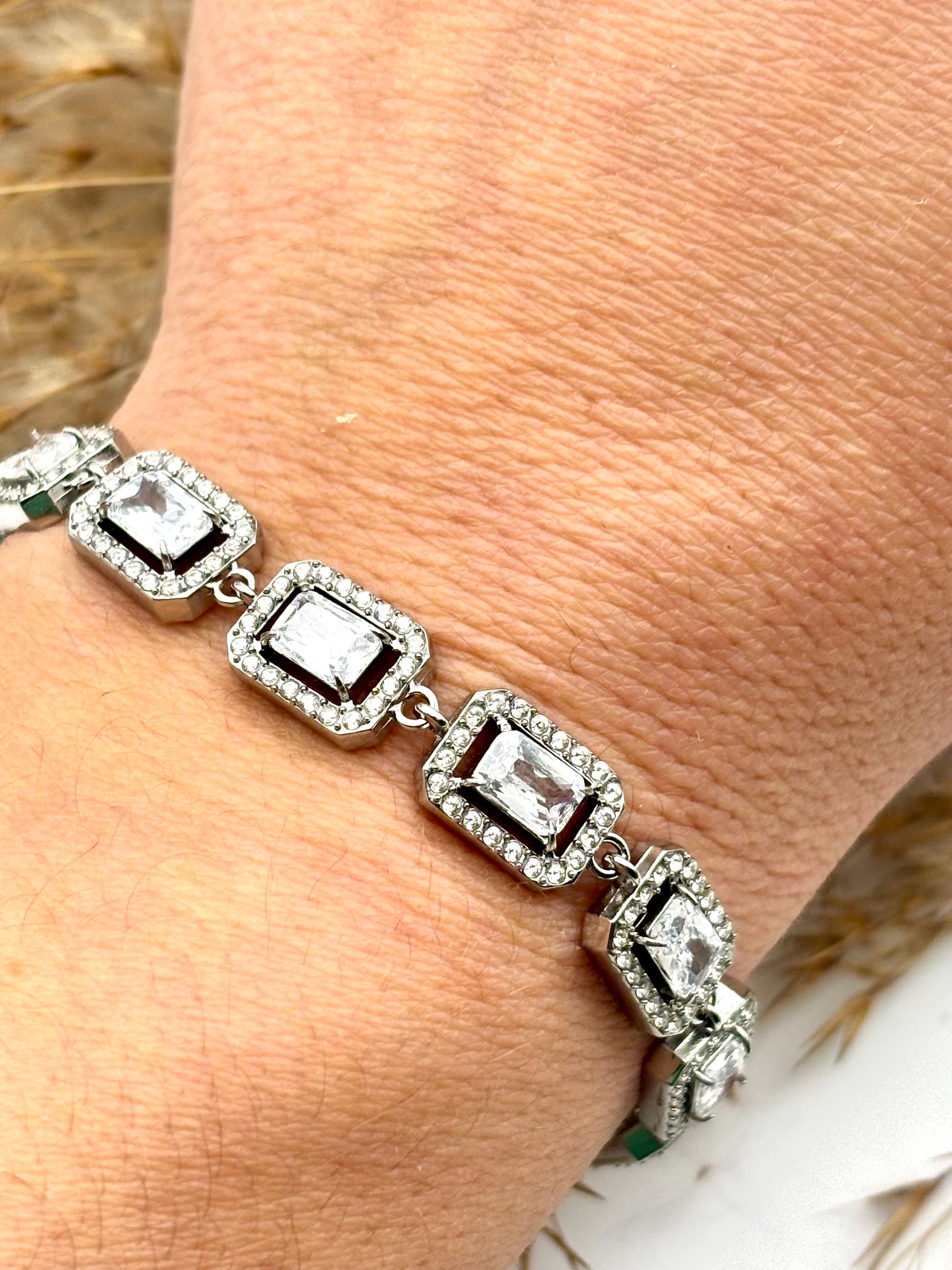 Ατσάλινο βραχιόλι Ριβιέρα χρώμα ασήμι με Ζιργκον!