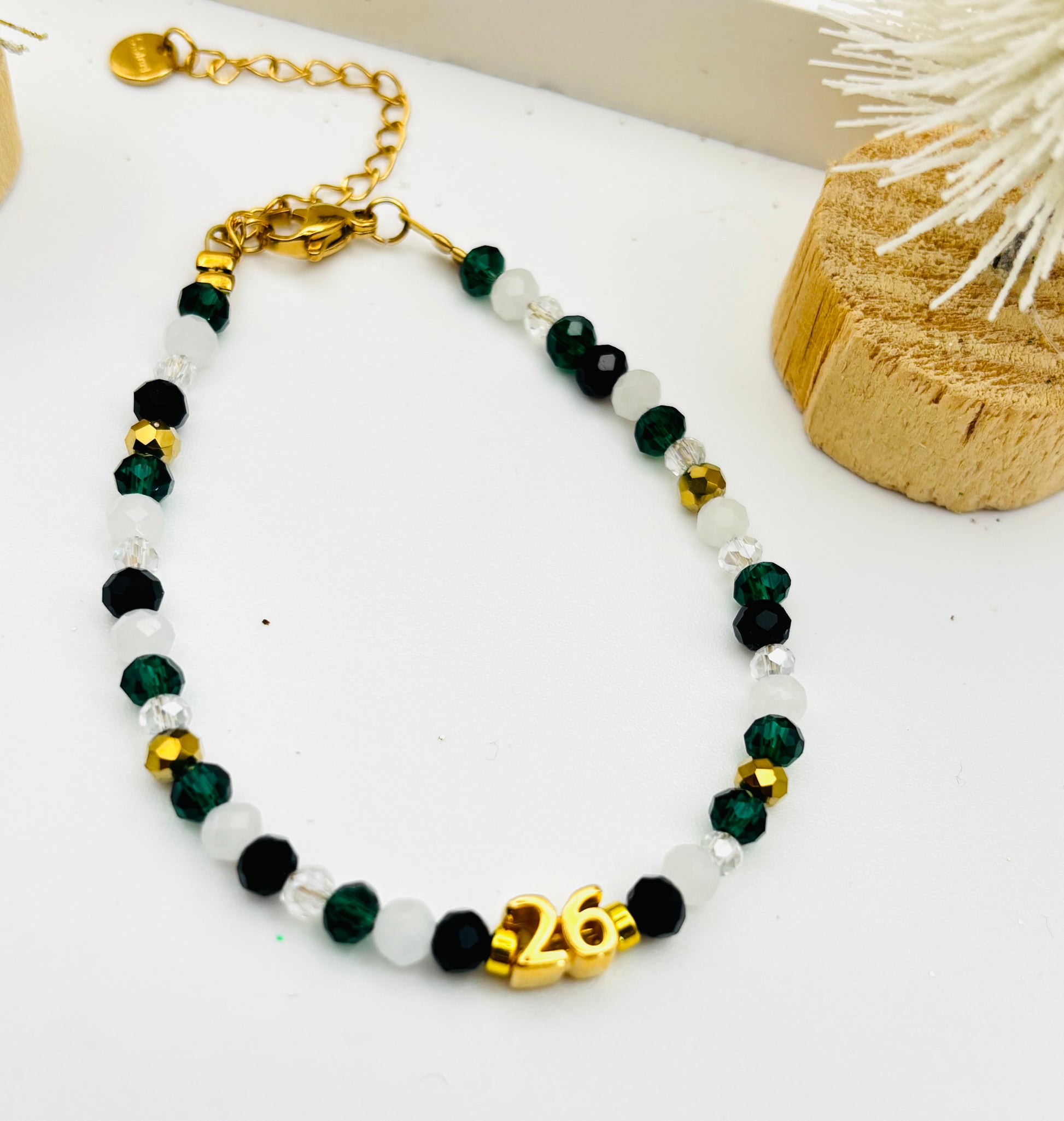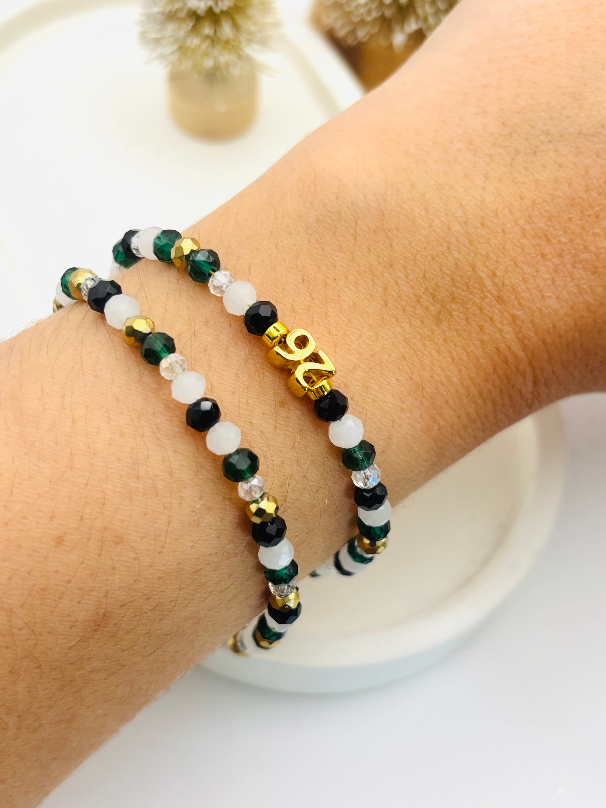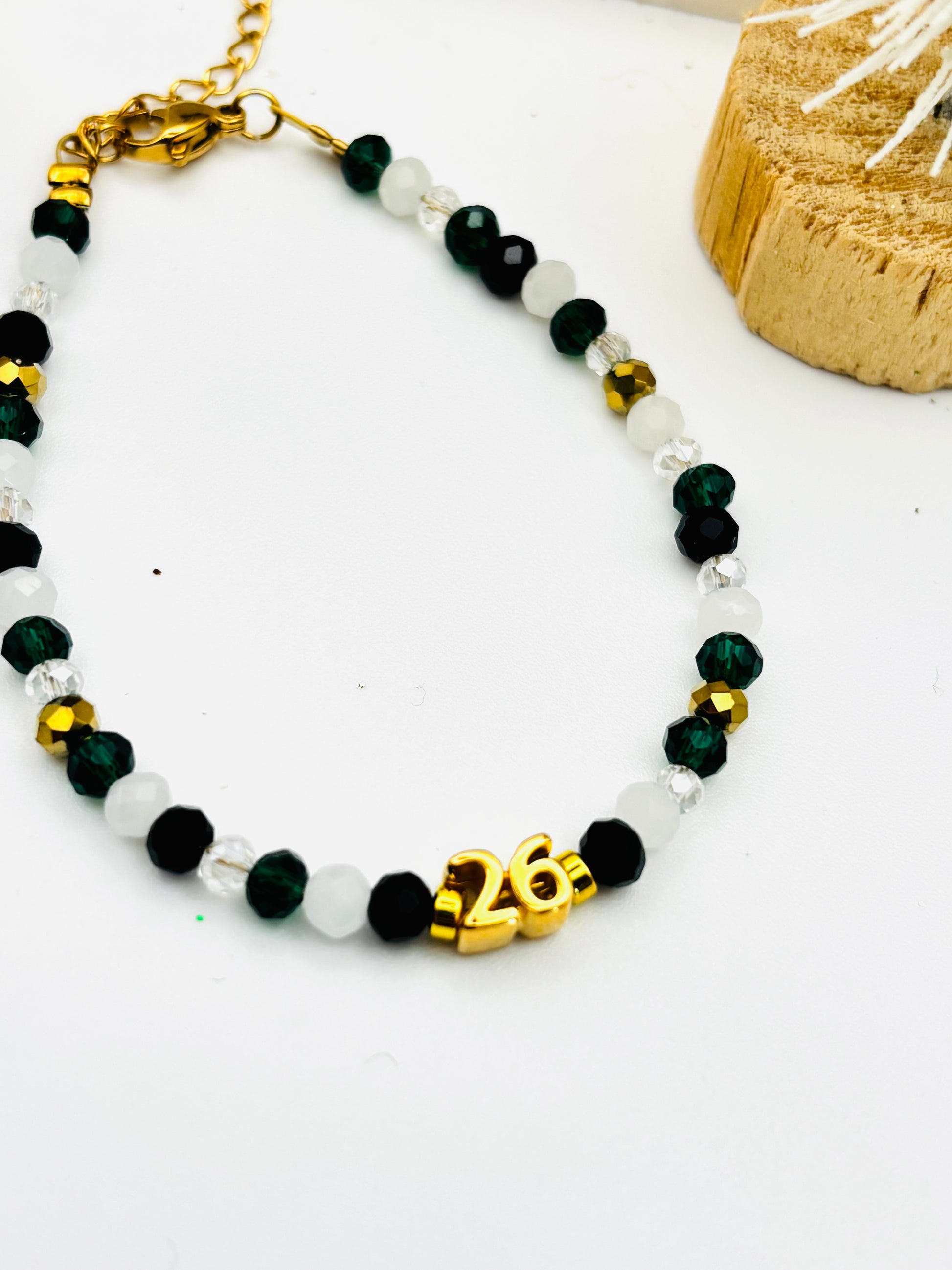 Γούρι βραχιόλι από ημιπολύτιμες πέτρες σε χρώμα κυπαρίσσι λευκό χρυσό!!