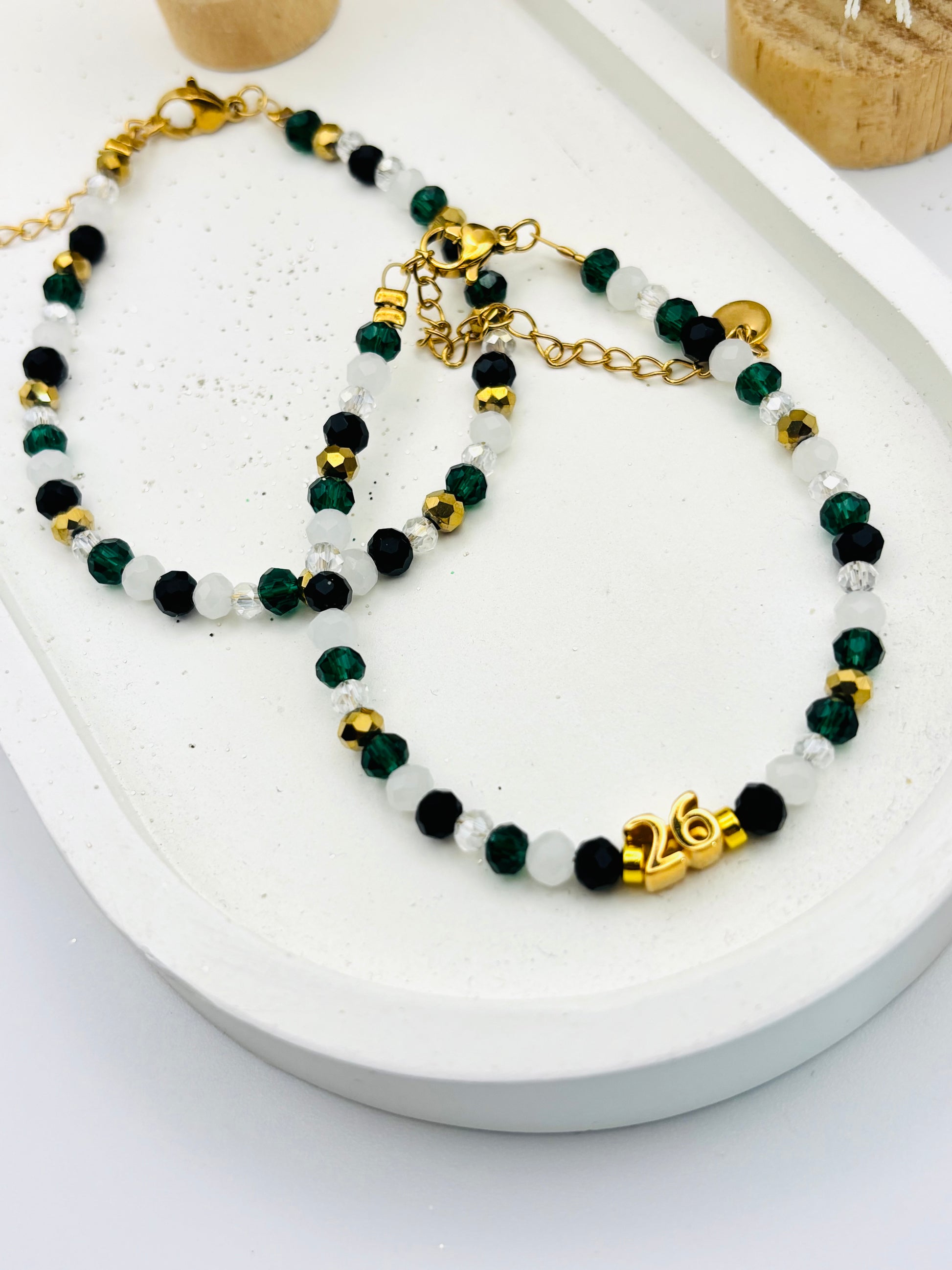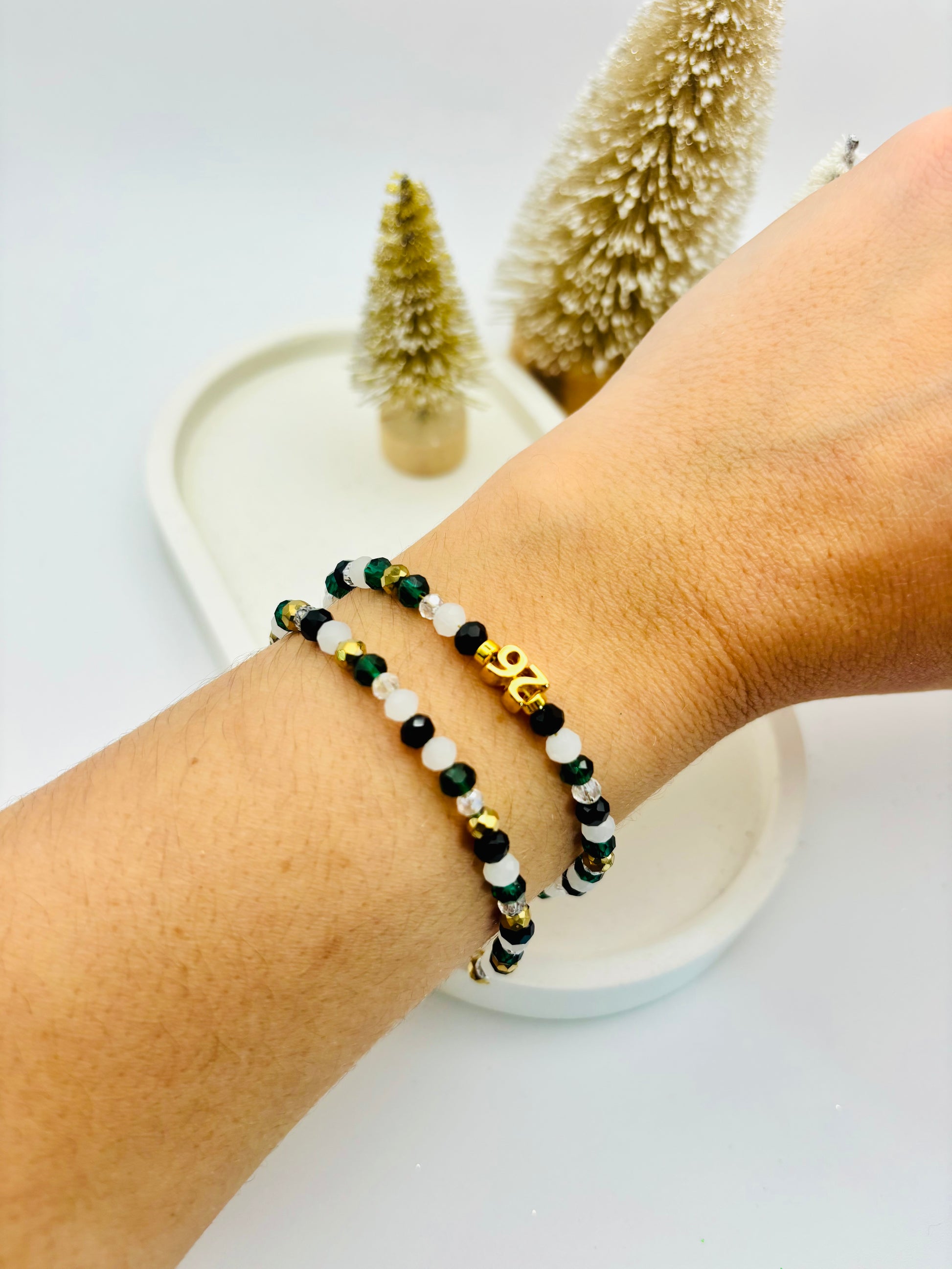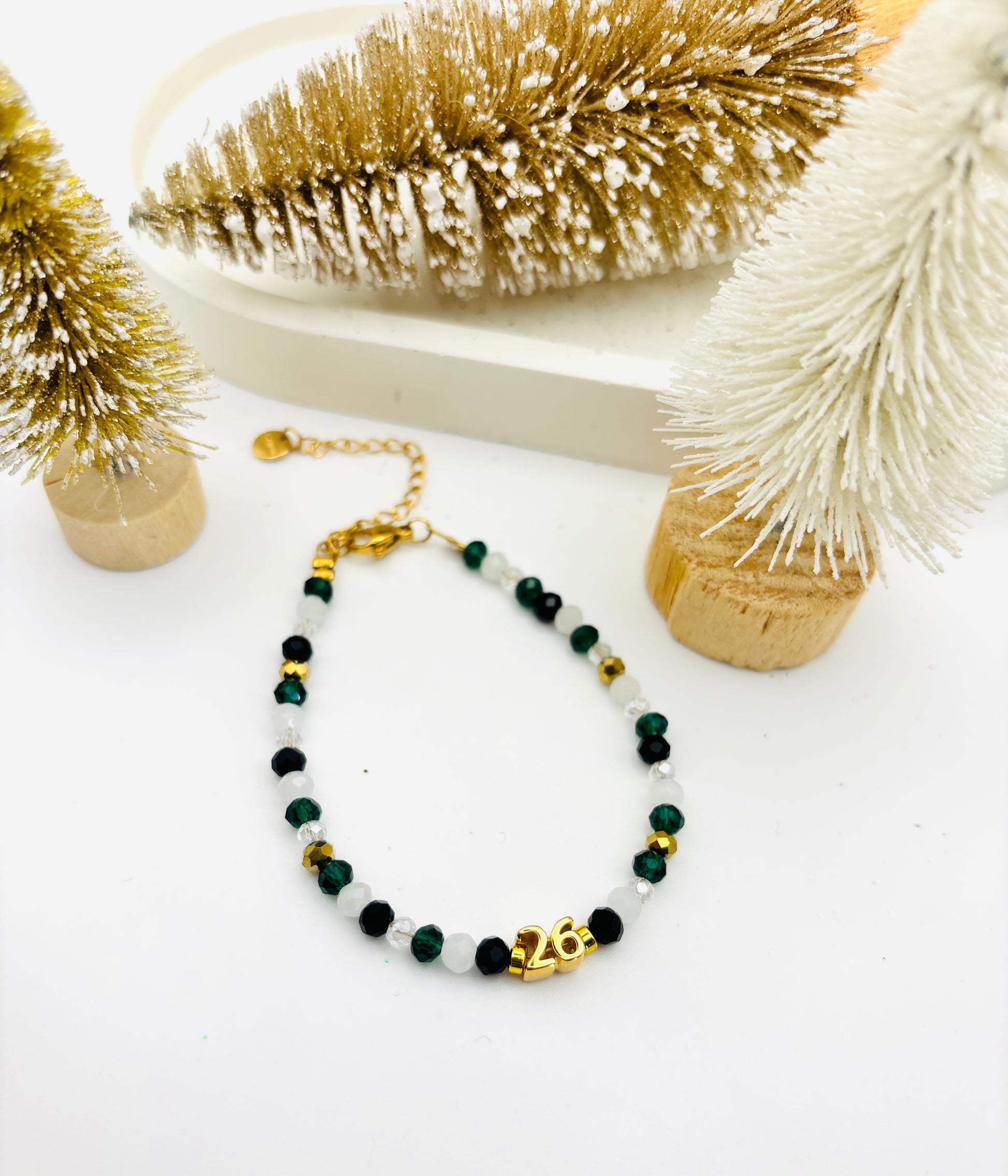 Γούρι βραχιόλι από ημιπολύτιμες πέτρες σε χρώμα κυπαρίσσι λευκό χρυσό!!