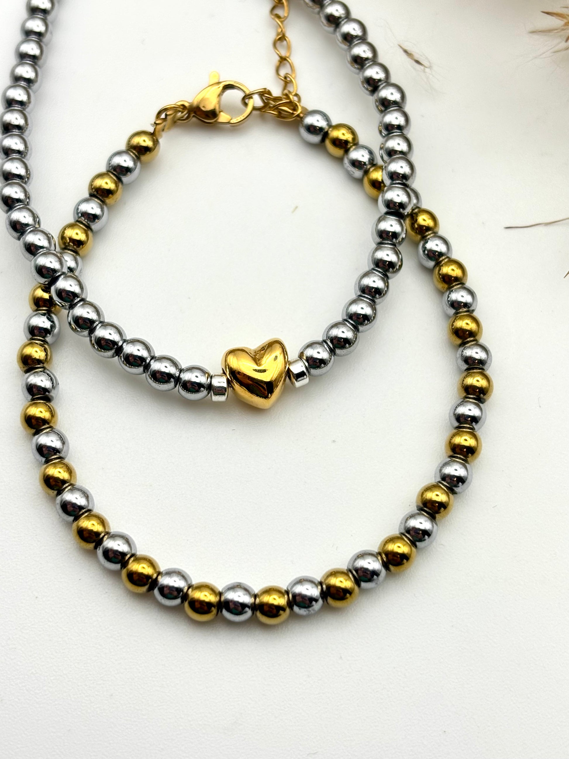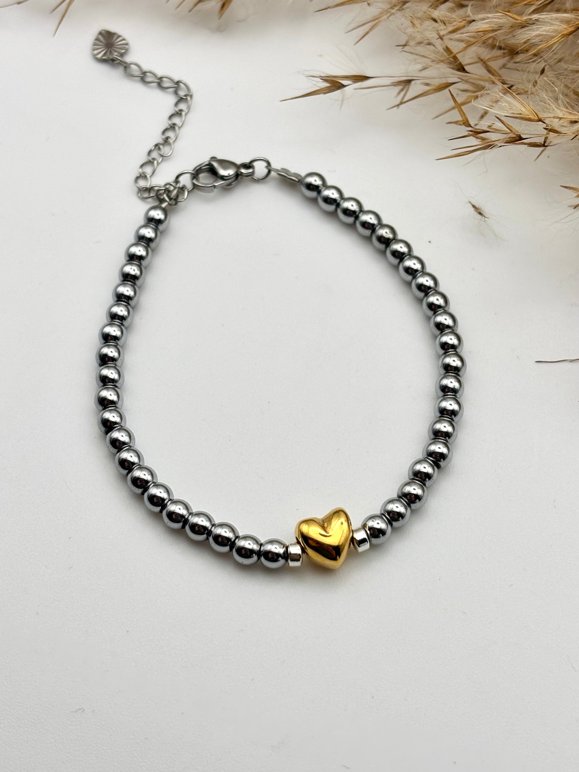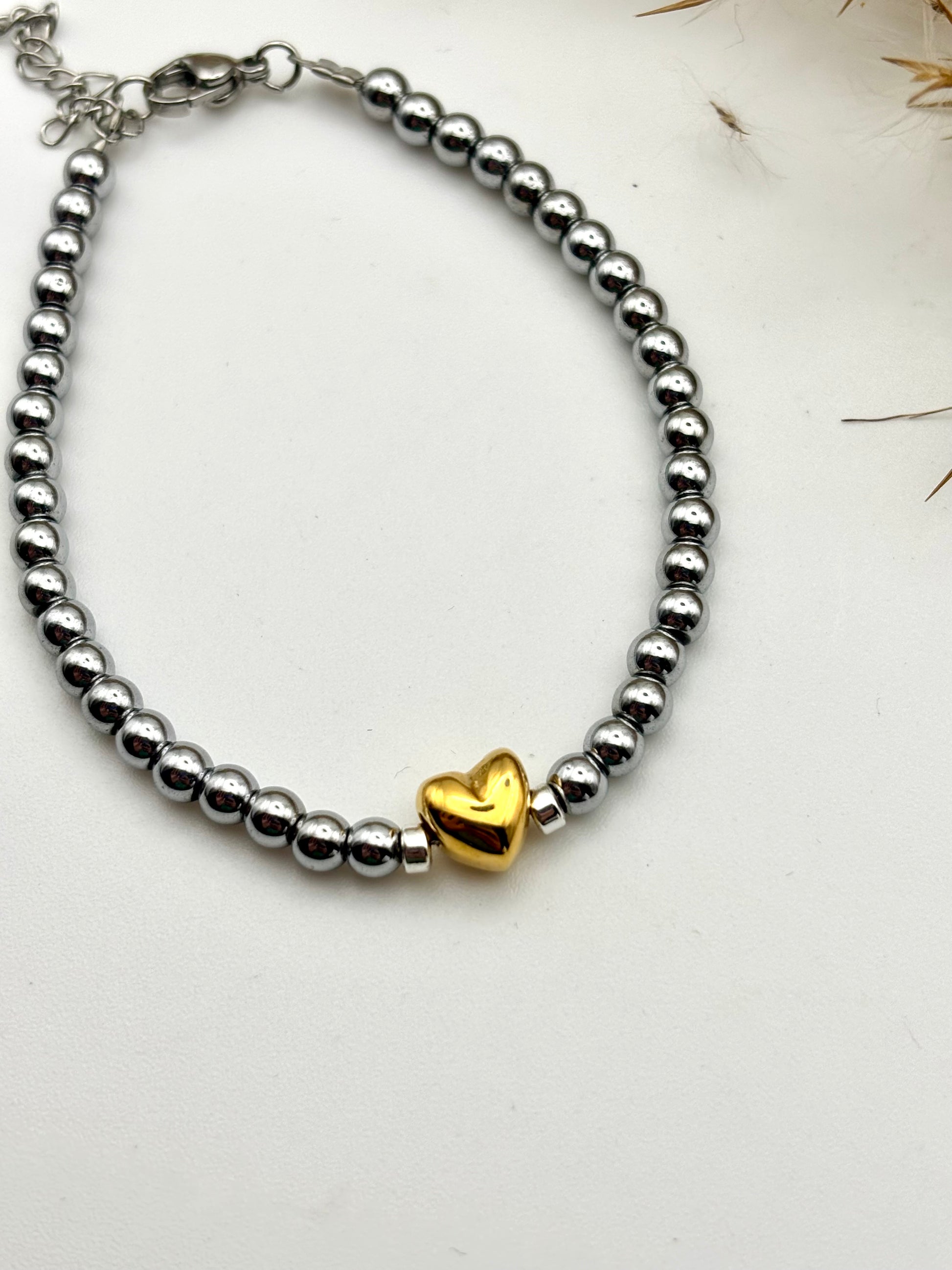 Χειροποίητο βραχιόλι από αιματίτη ασήμι και χρυσό χαρακτηριστικό καρδιά by SJ!