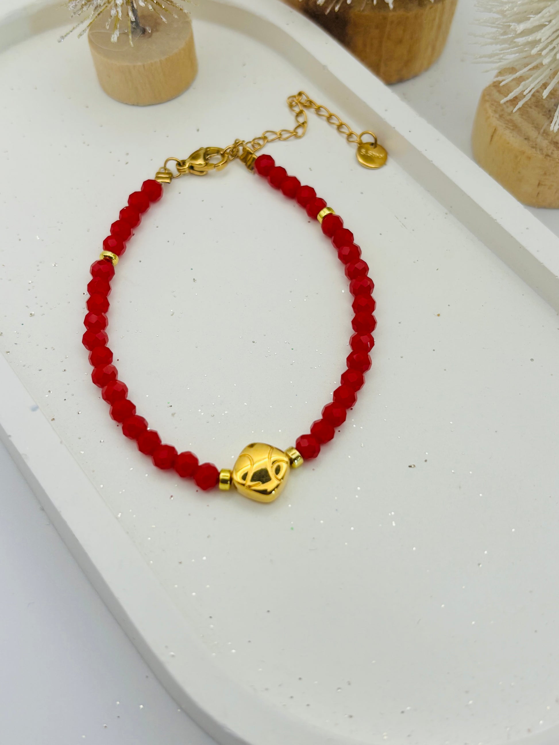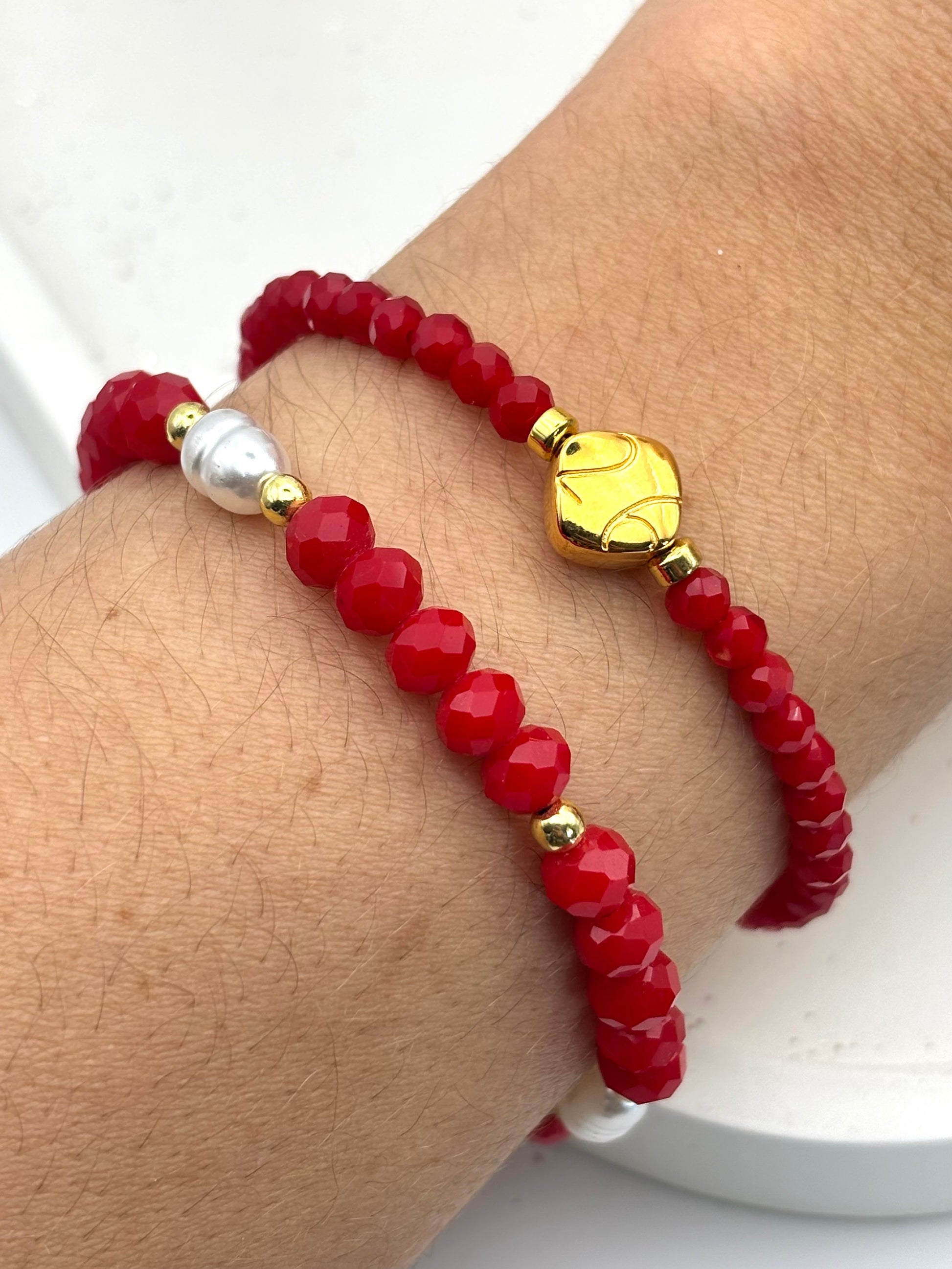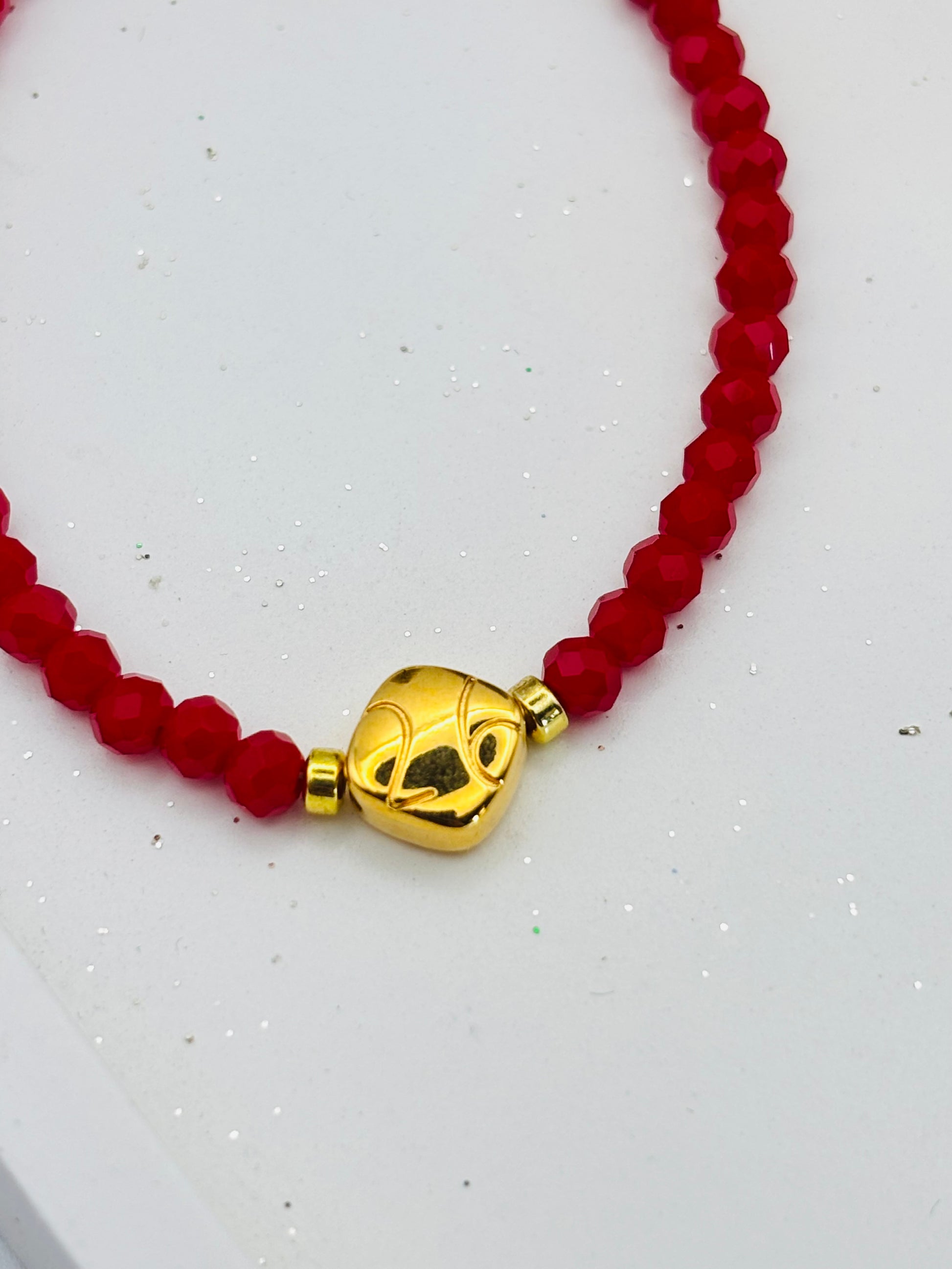Γουρακι βραχιόλι σε χρώμα κόκκινο με χρυσά μοτίφ ατσάλινα!