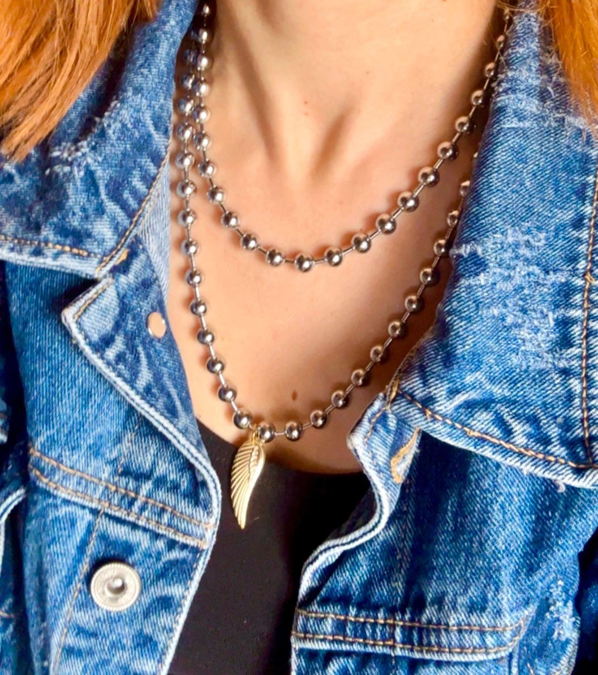 Κομψό κολιε με στρογγυλή ατσάλινη χάντρα!!