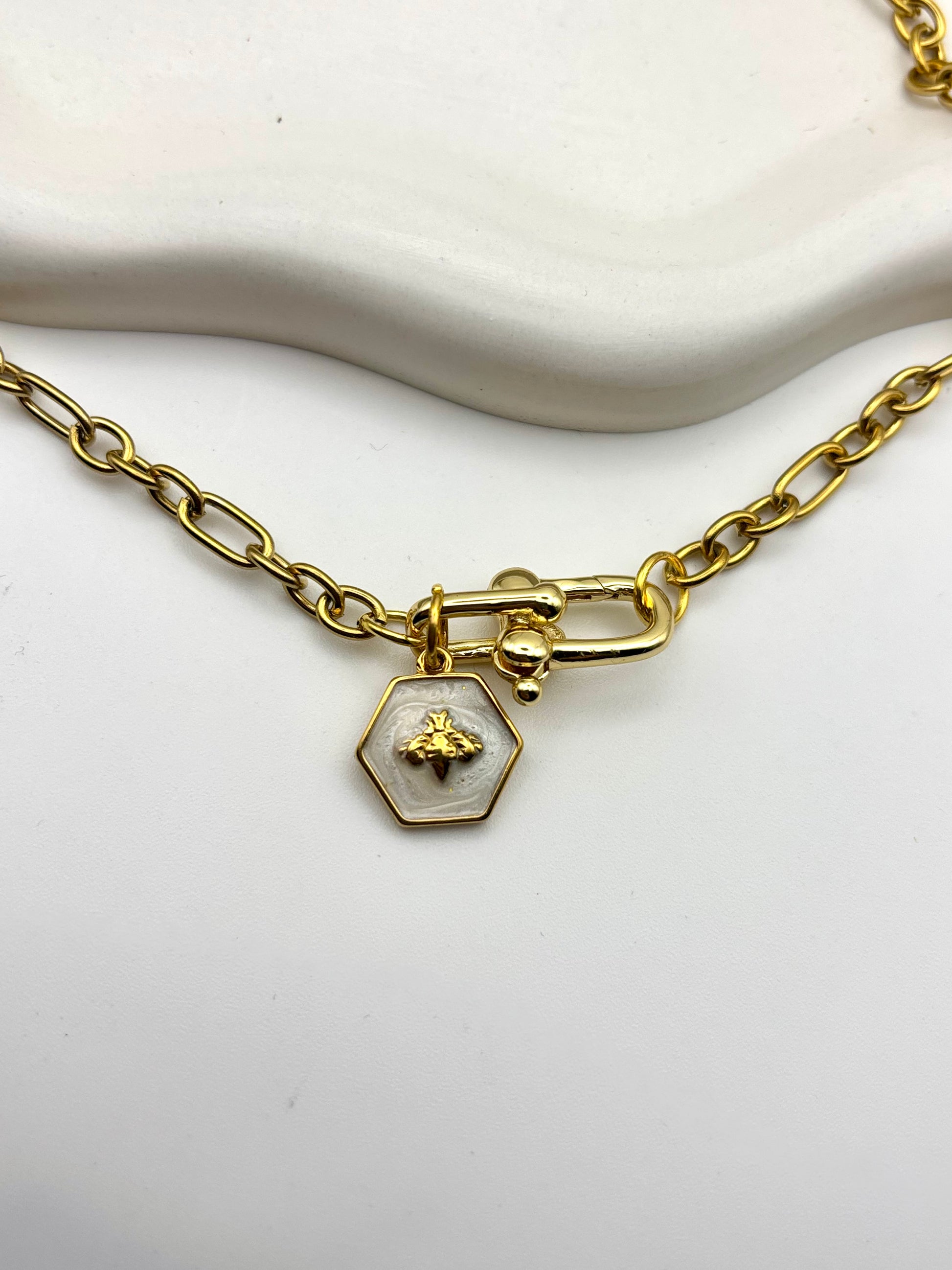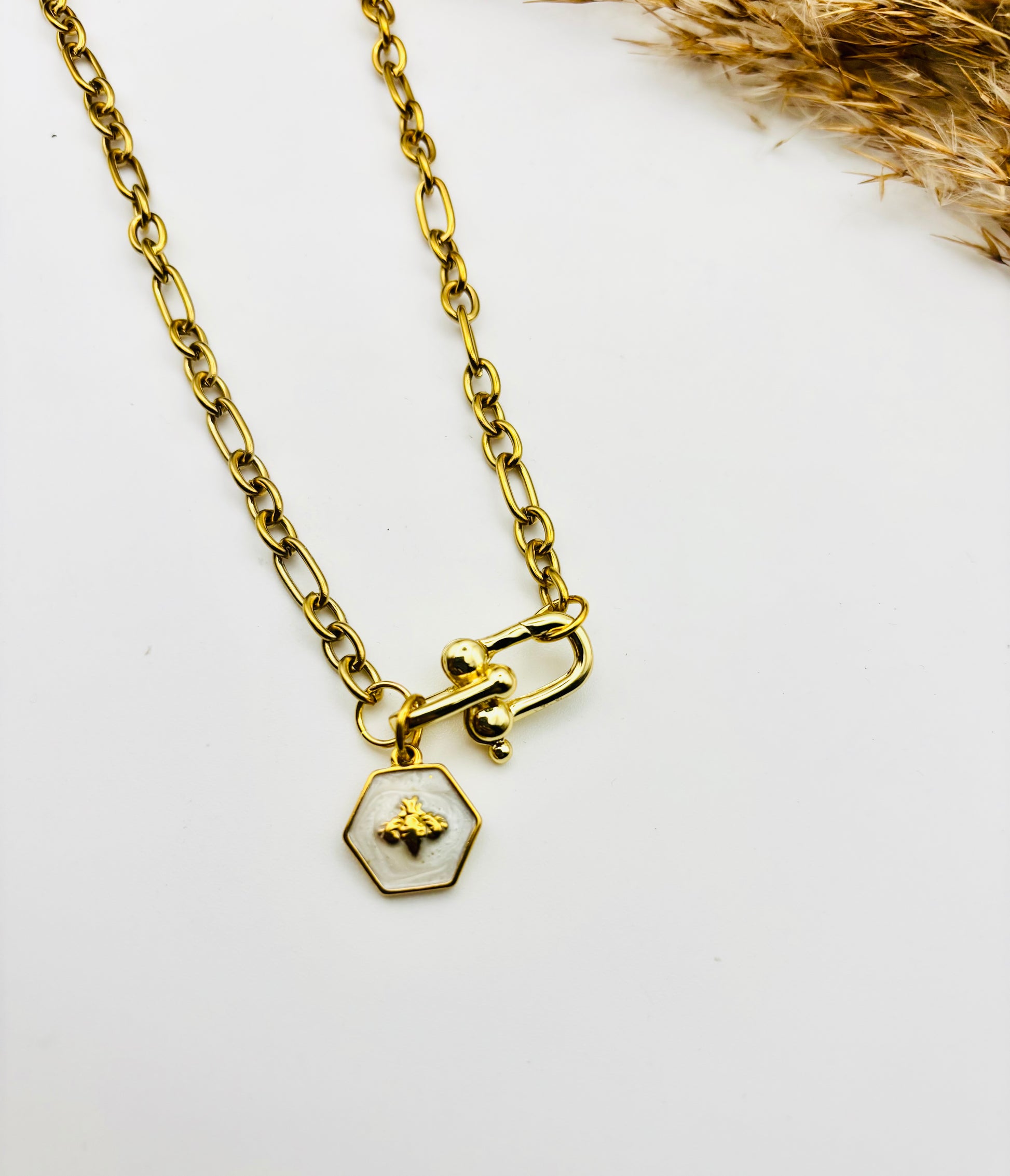 Ατσάλινο κολιέ χρώμα χρυσό με υπέροχο κούμπωμα και κρεμαστή μέλισσα ατσάλινο στοιχείο!