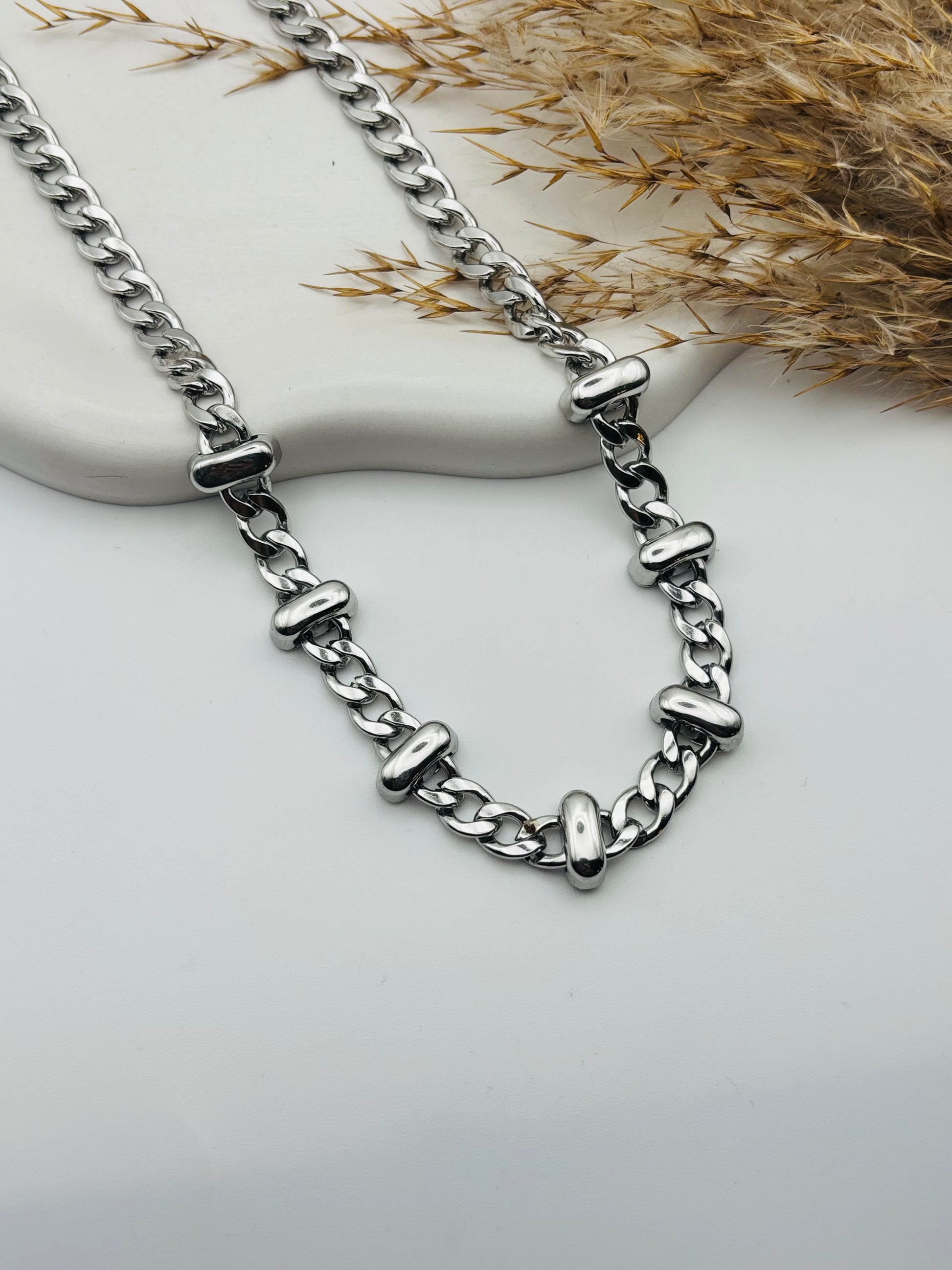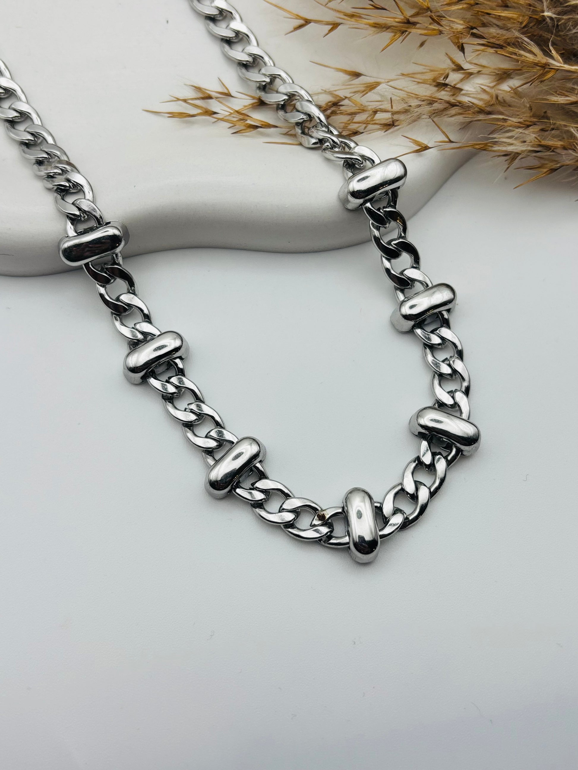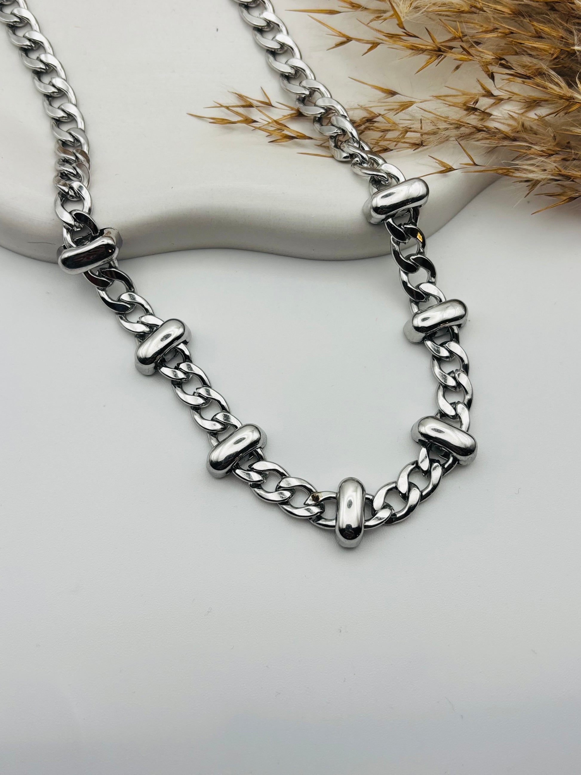 Ατσάλινο σταθερό κολιέ με εγκοπές χρώμα ασημί!!