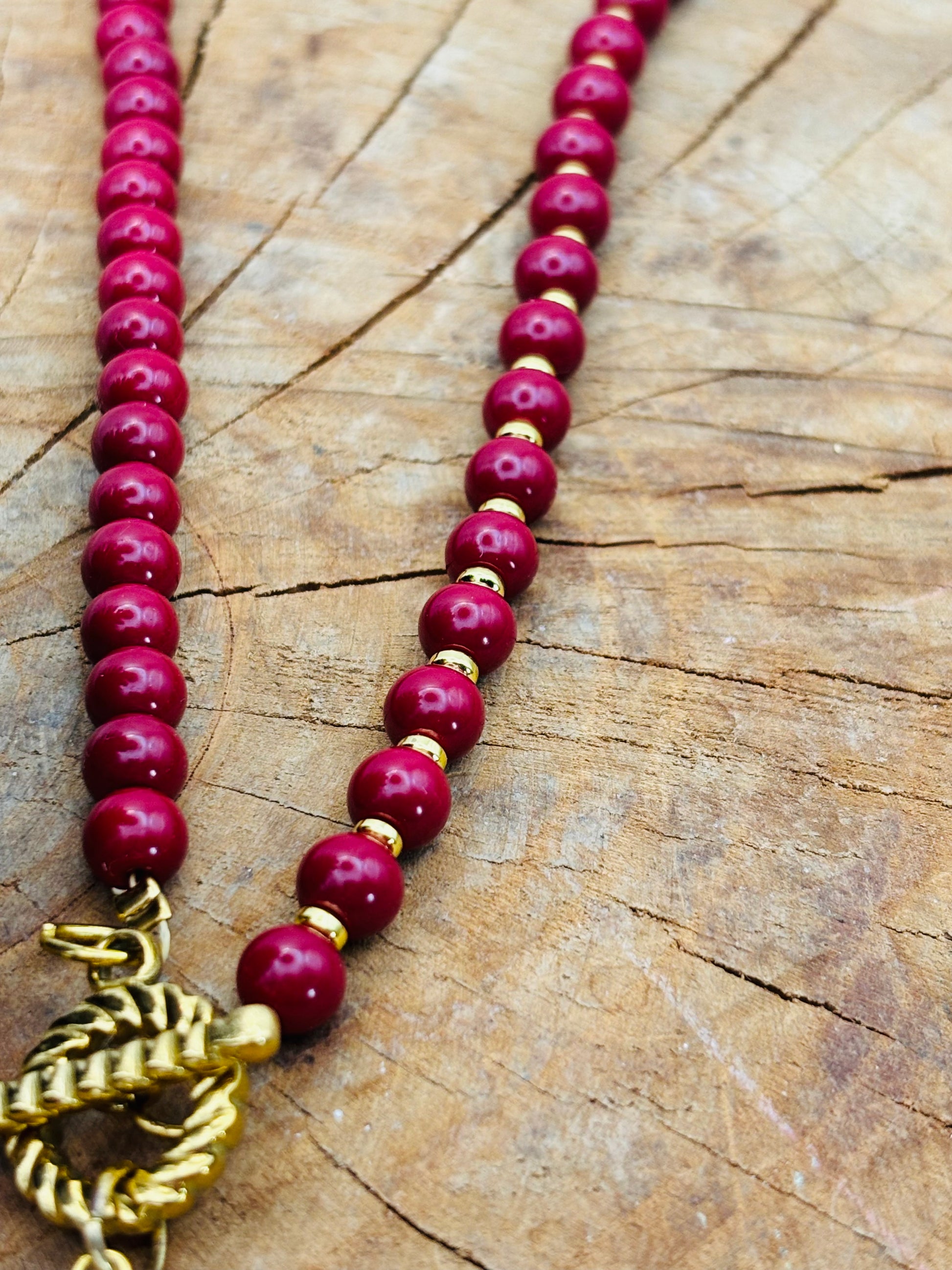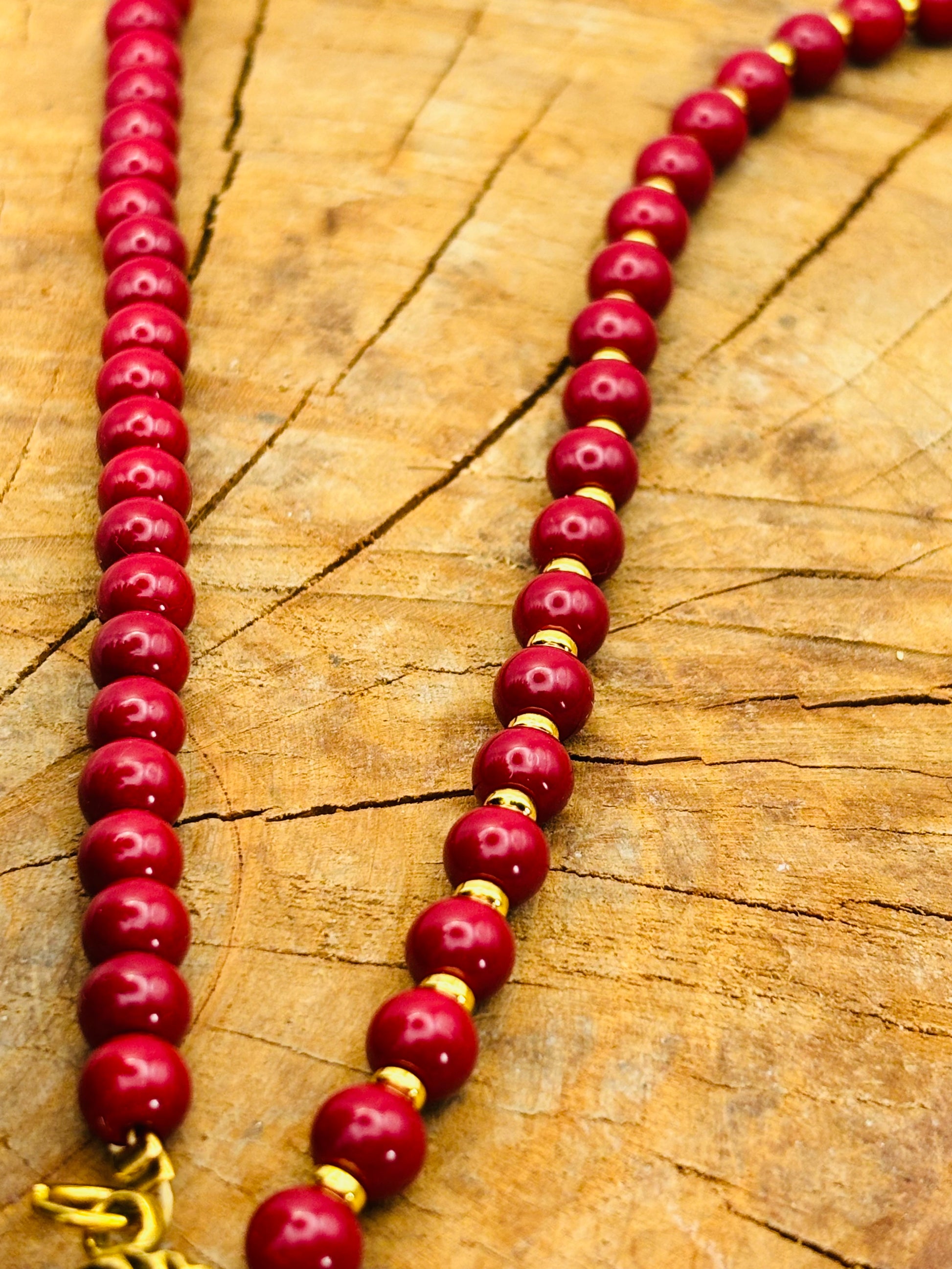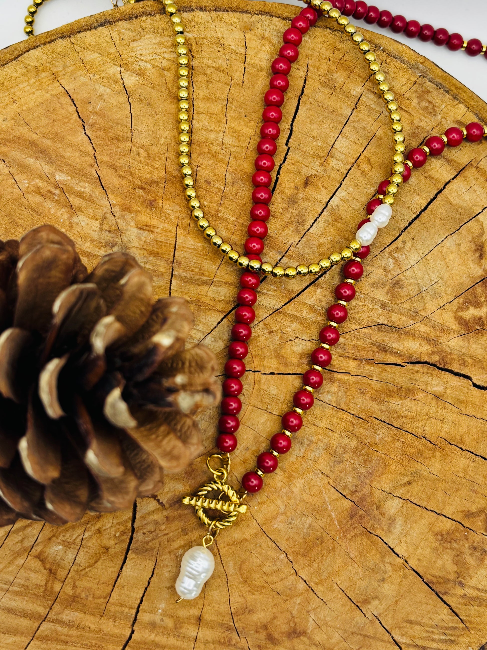 Κομψό μακρύ κολιέ από ημιπολύτιμες πέτρες κόκκινο χρώμα με χρυσά ατσάλινά διακοσμητικά!!