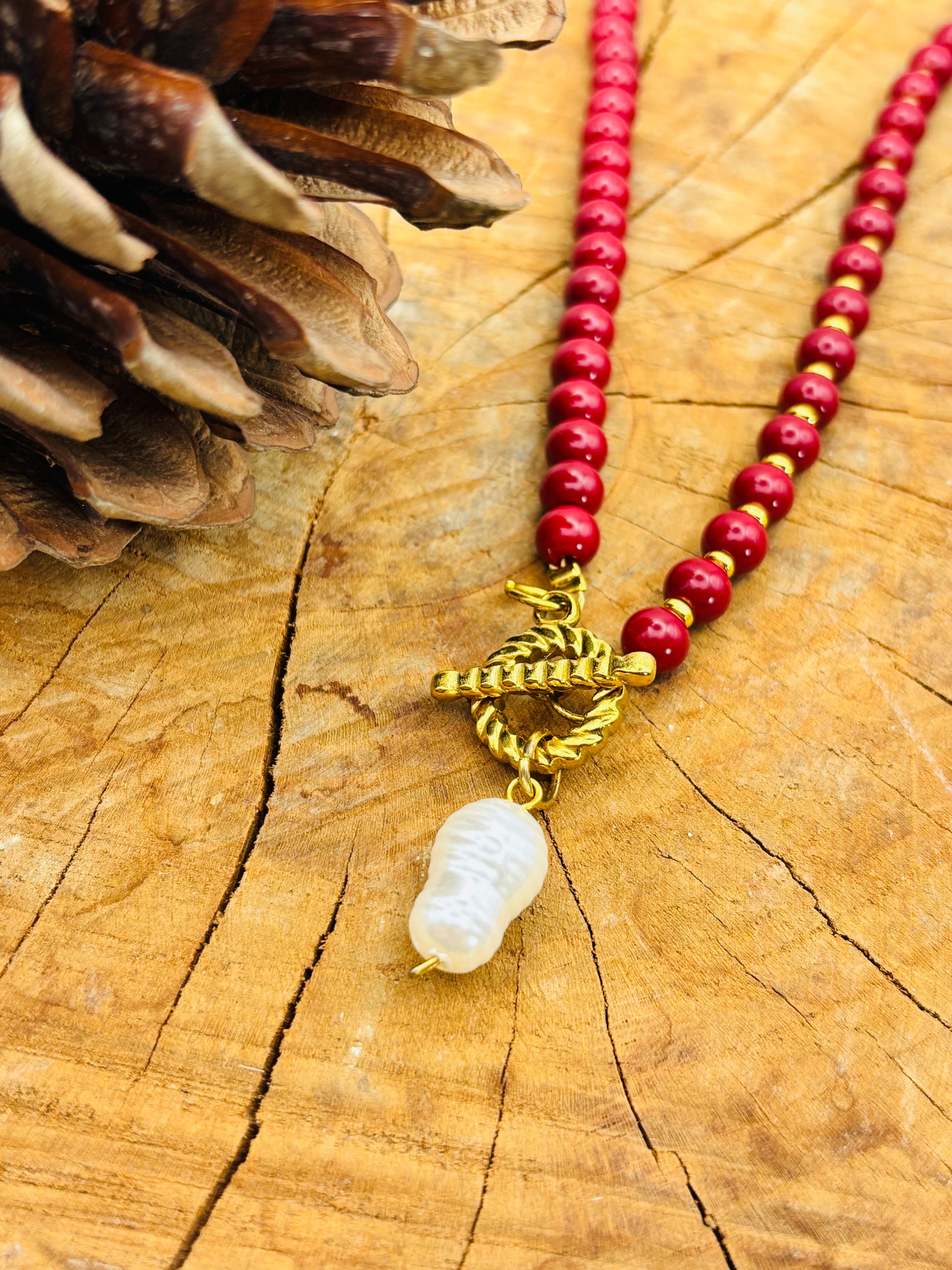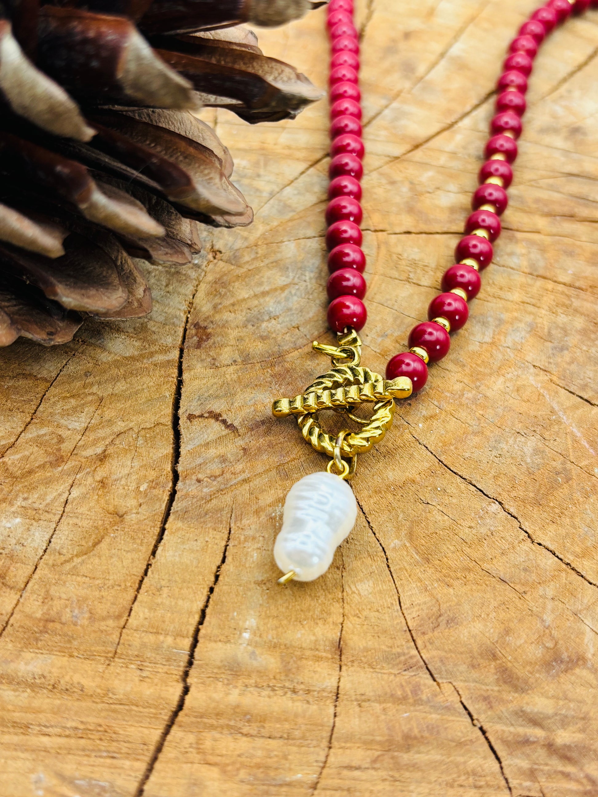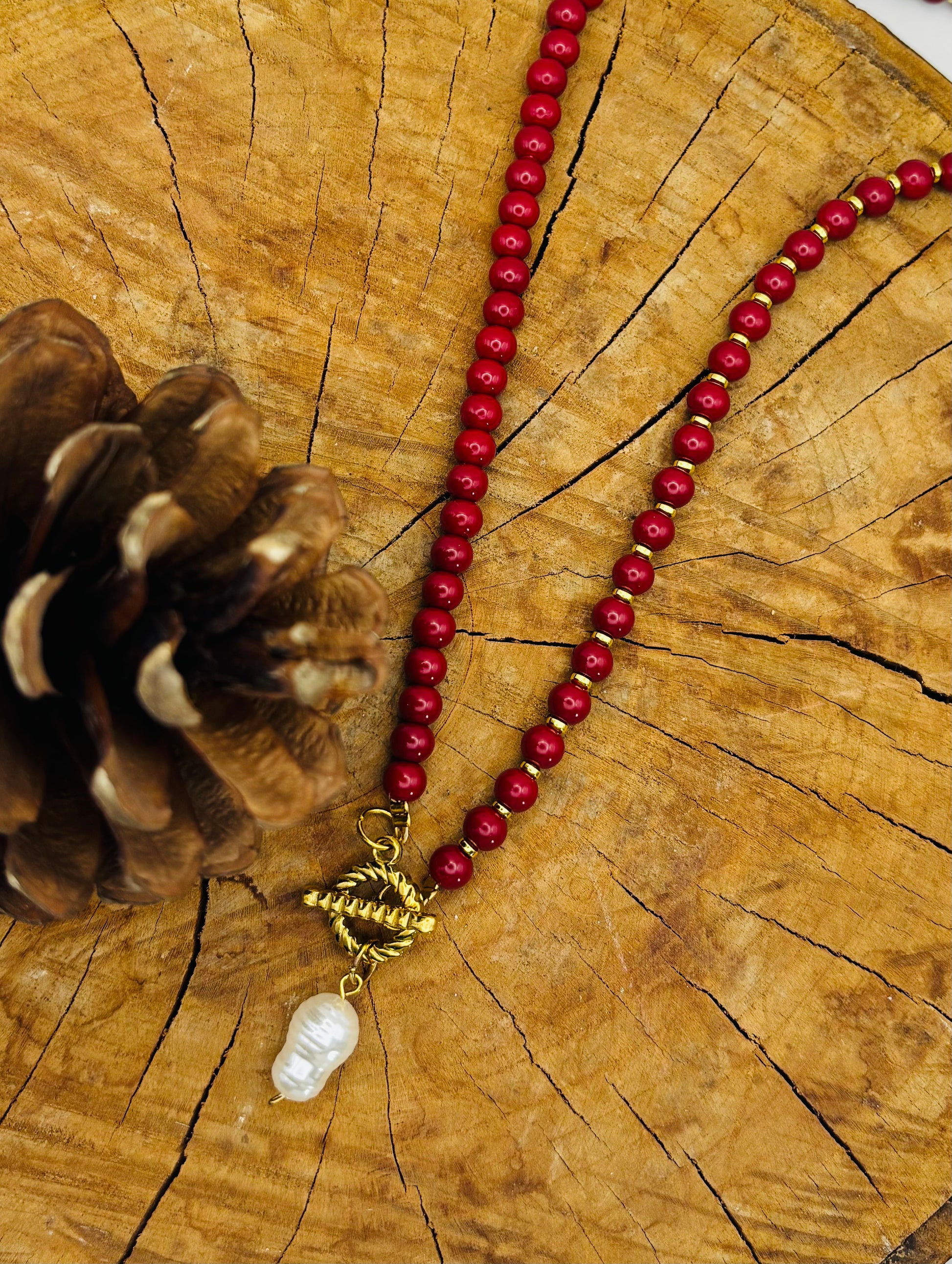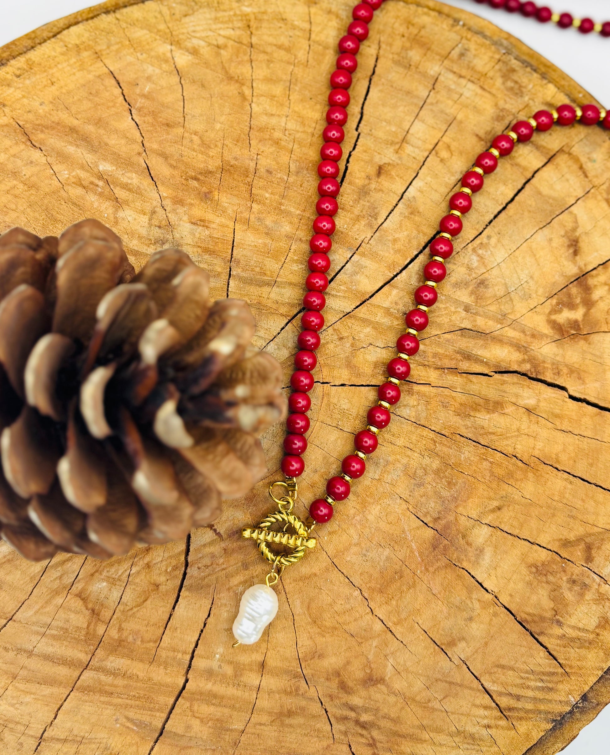 Κομψό μακρύ κολιέ από ημιπολύτιμες πέτρες κόκκινο χρώμα με χρυσά ατσάλινά διακοσμητικά!!
