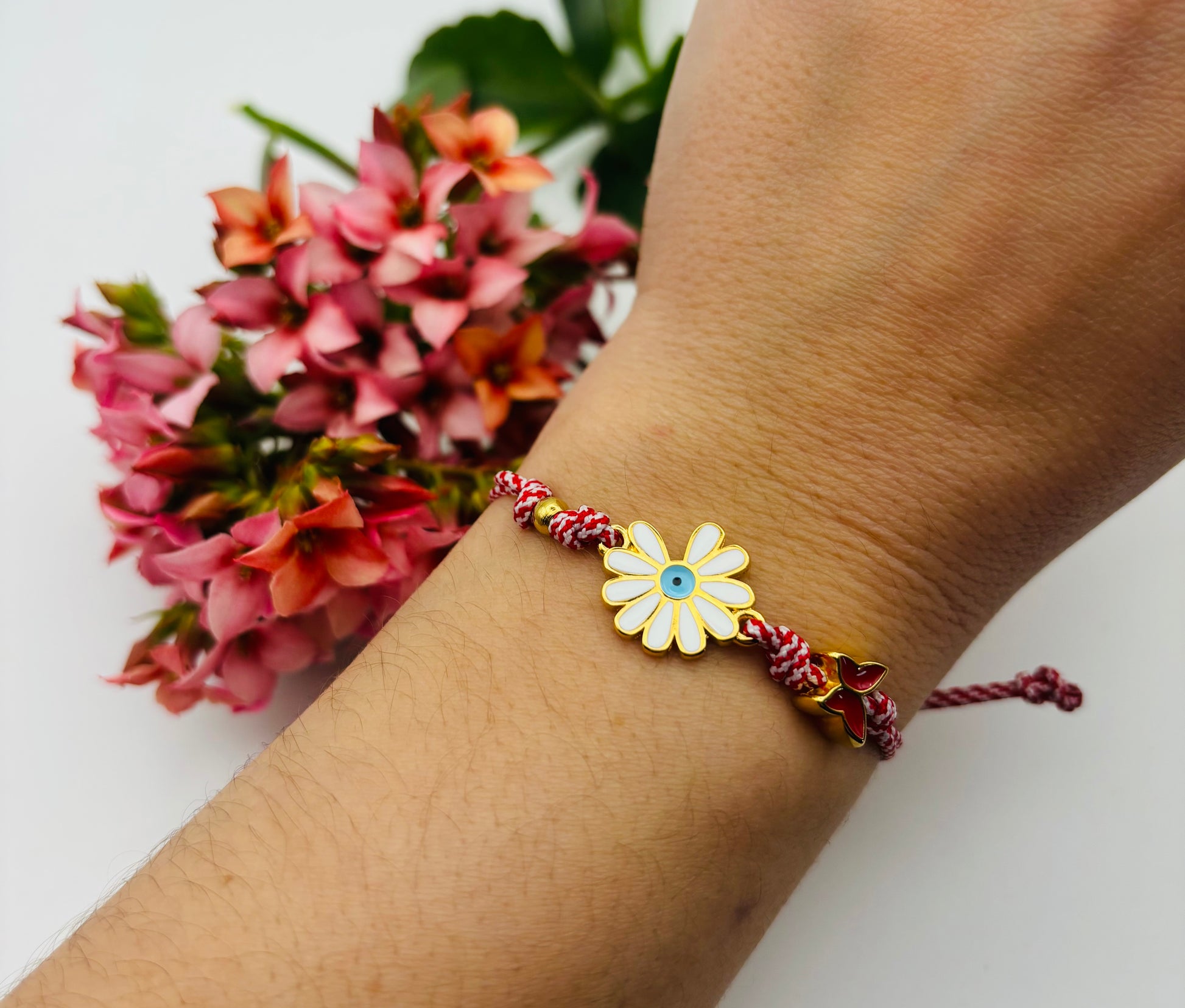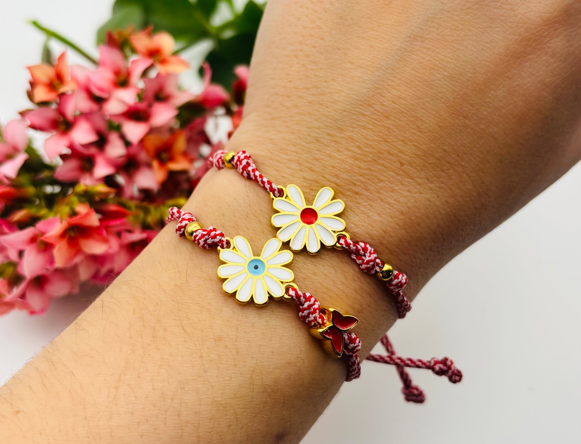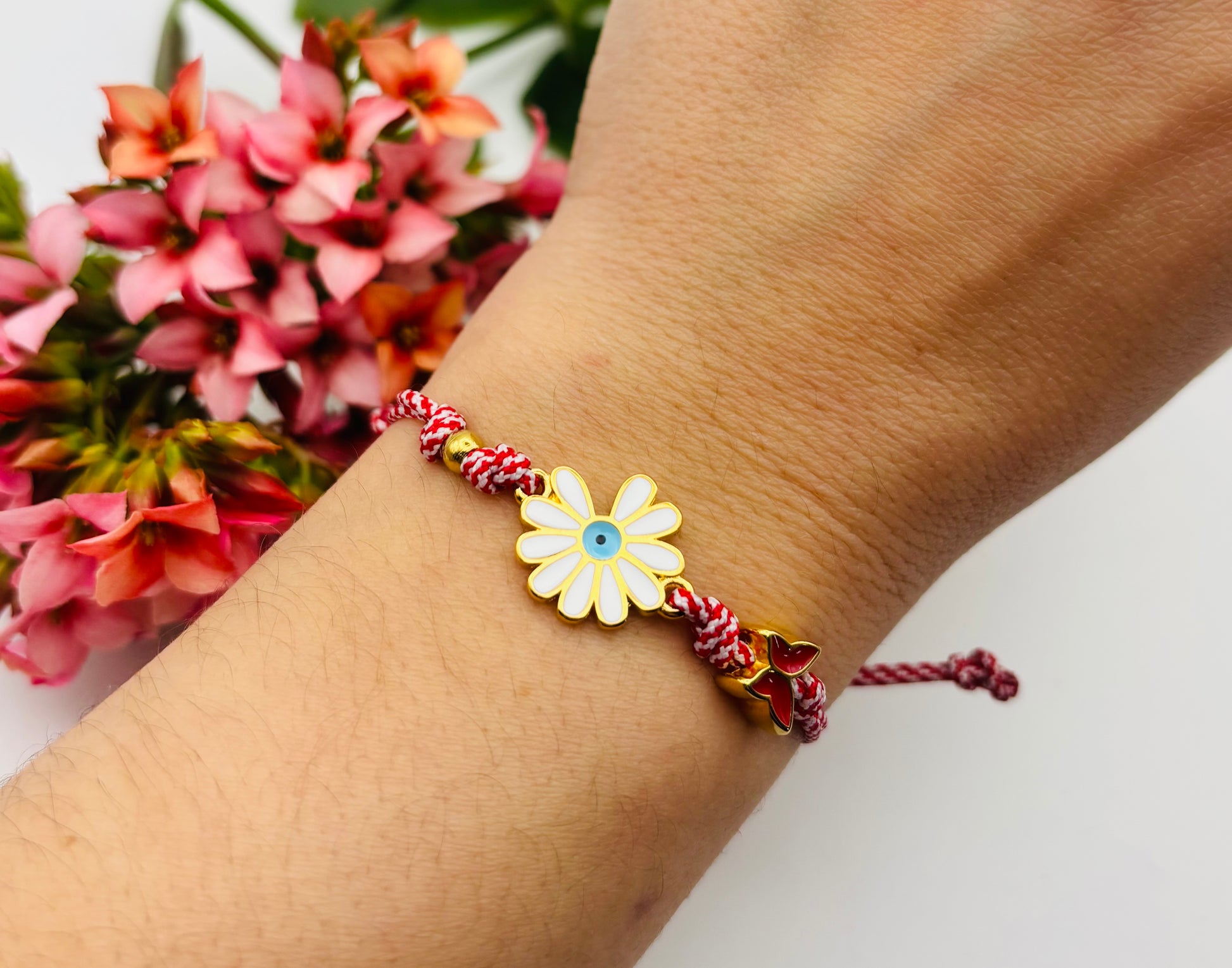 Χειροποίητο μαρτακι σε λεπτό κορδόνι με μαργαρίτα σε δύο σχέδια!