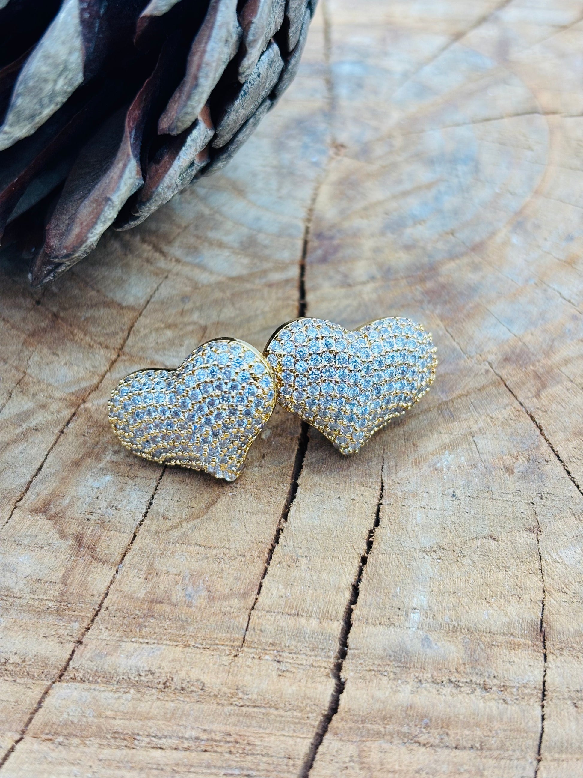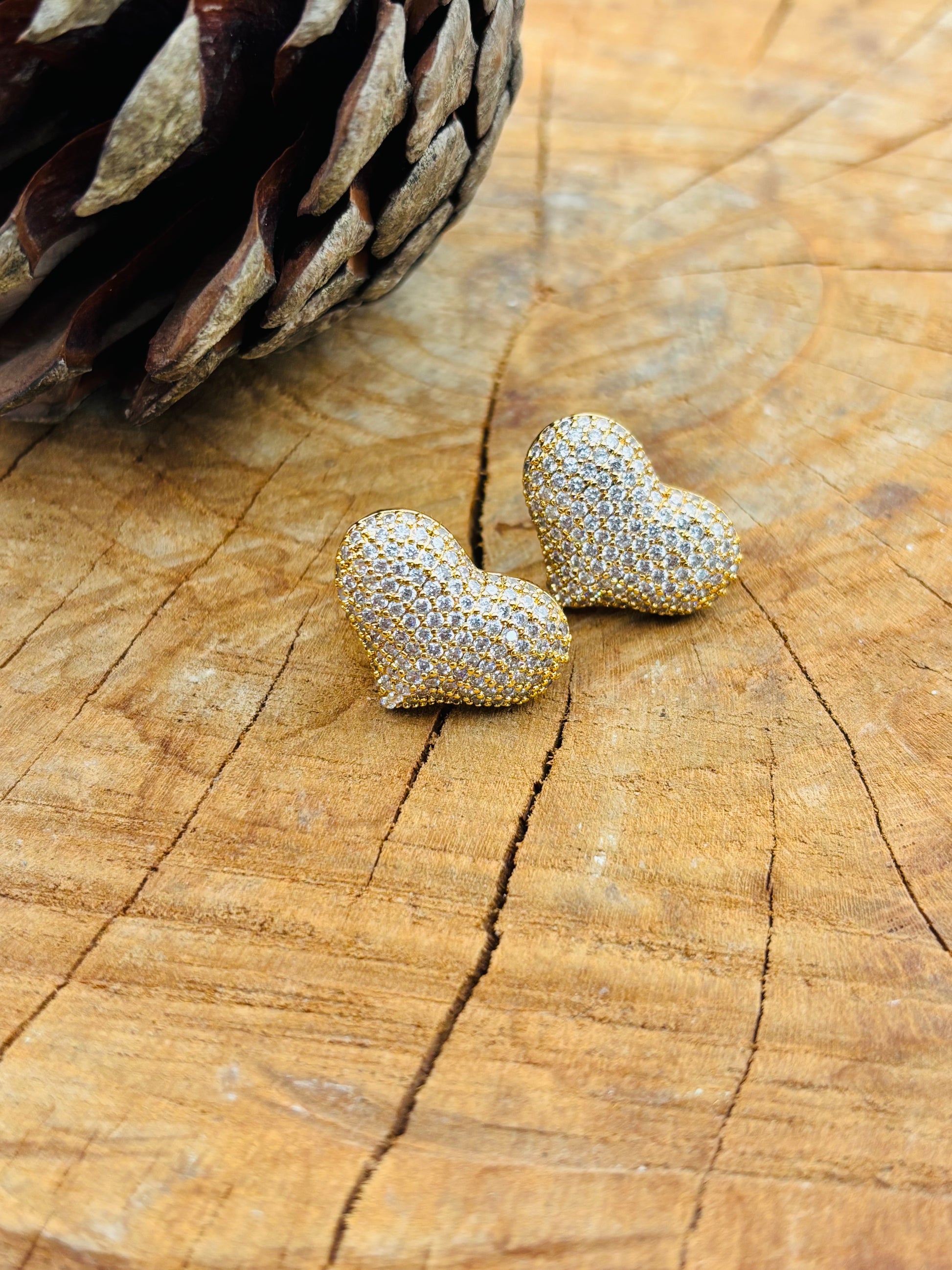 Ατσάλινα σκουλαρίκια σε χρώμα χρυσό με ζιργκον καρδιές!!