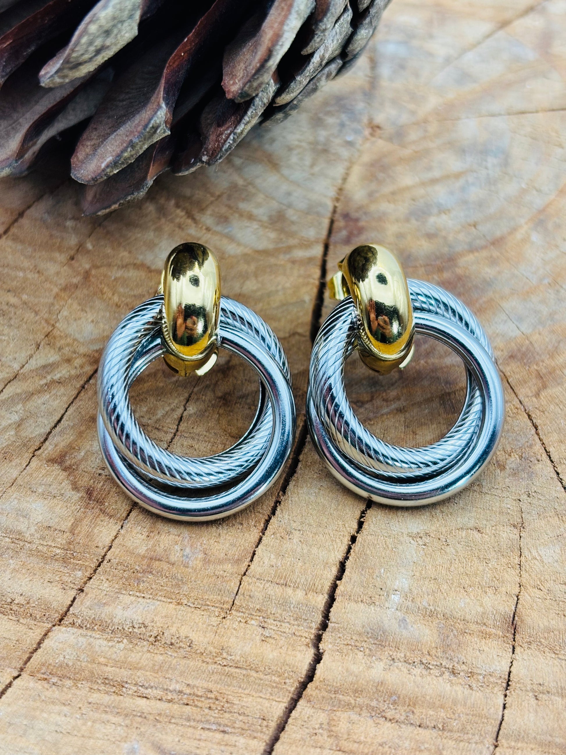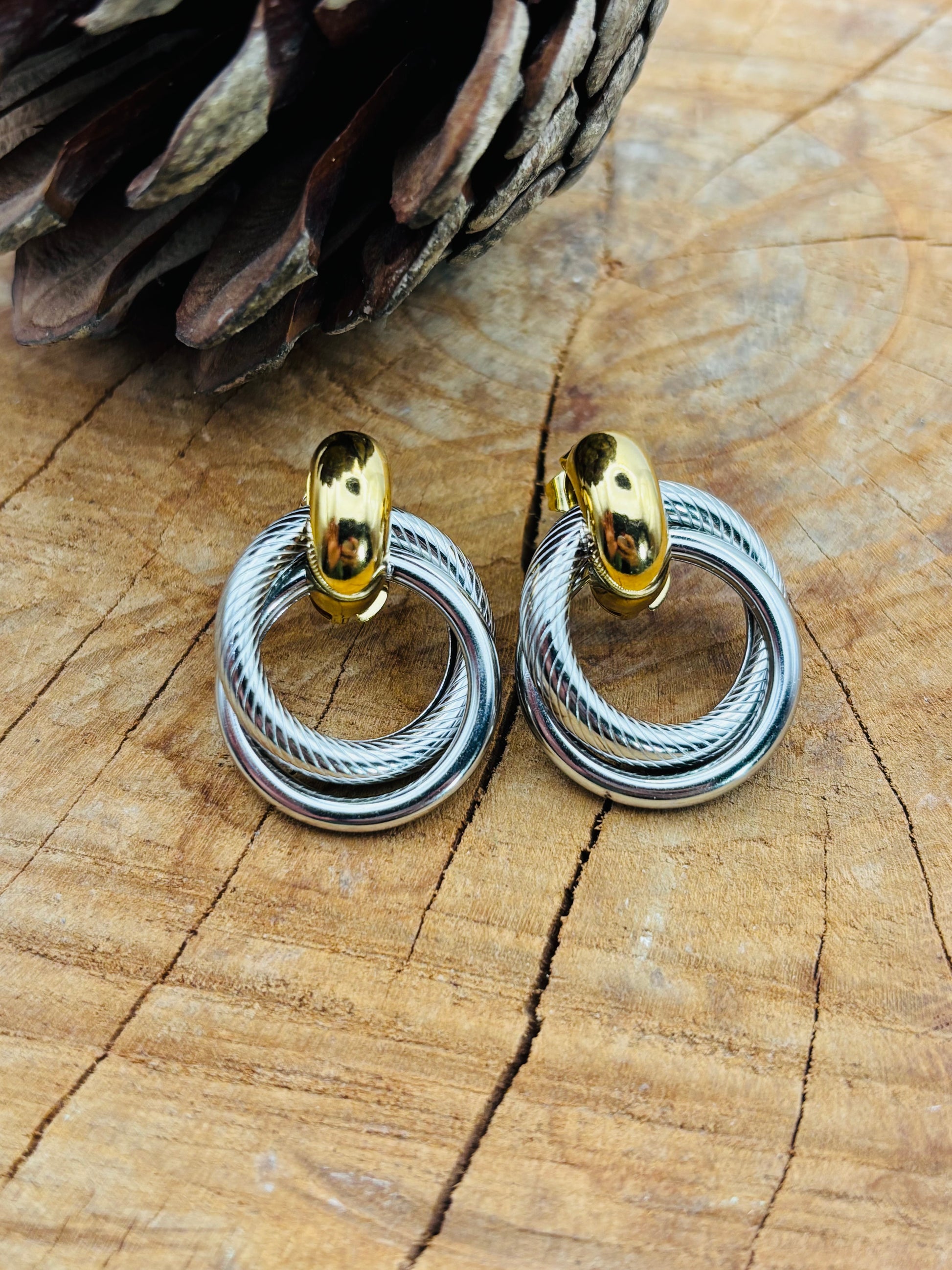 Κομψά μοντέρνα σκουλαρίκια διπλό χρώμα και σχέδιο!
