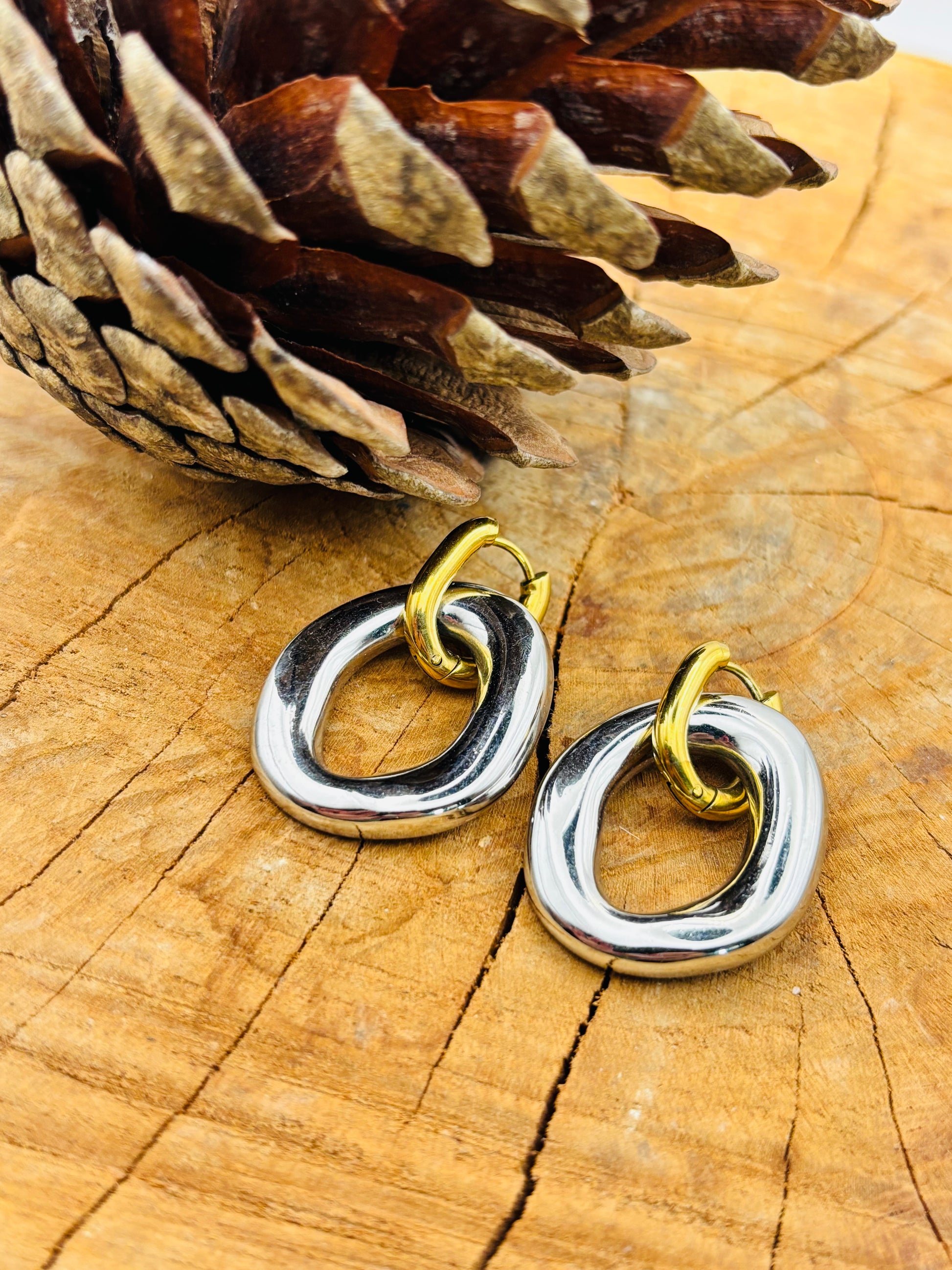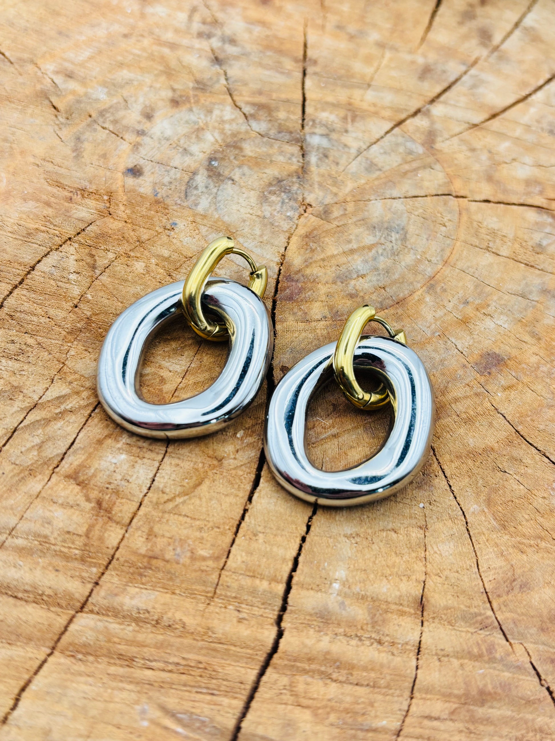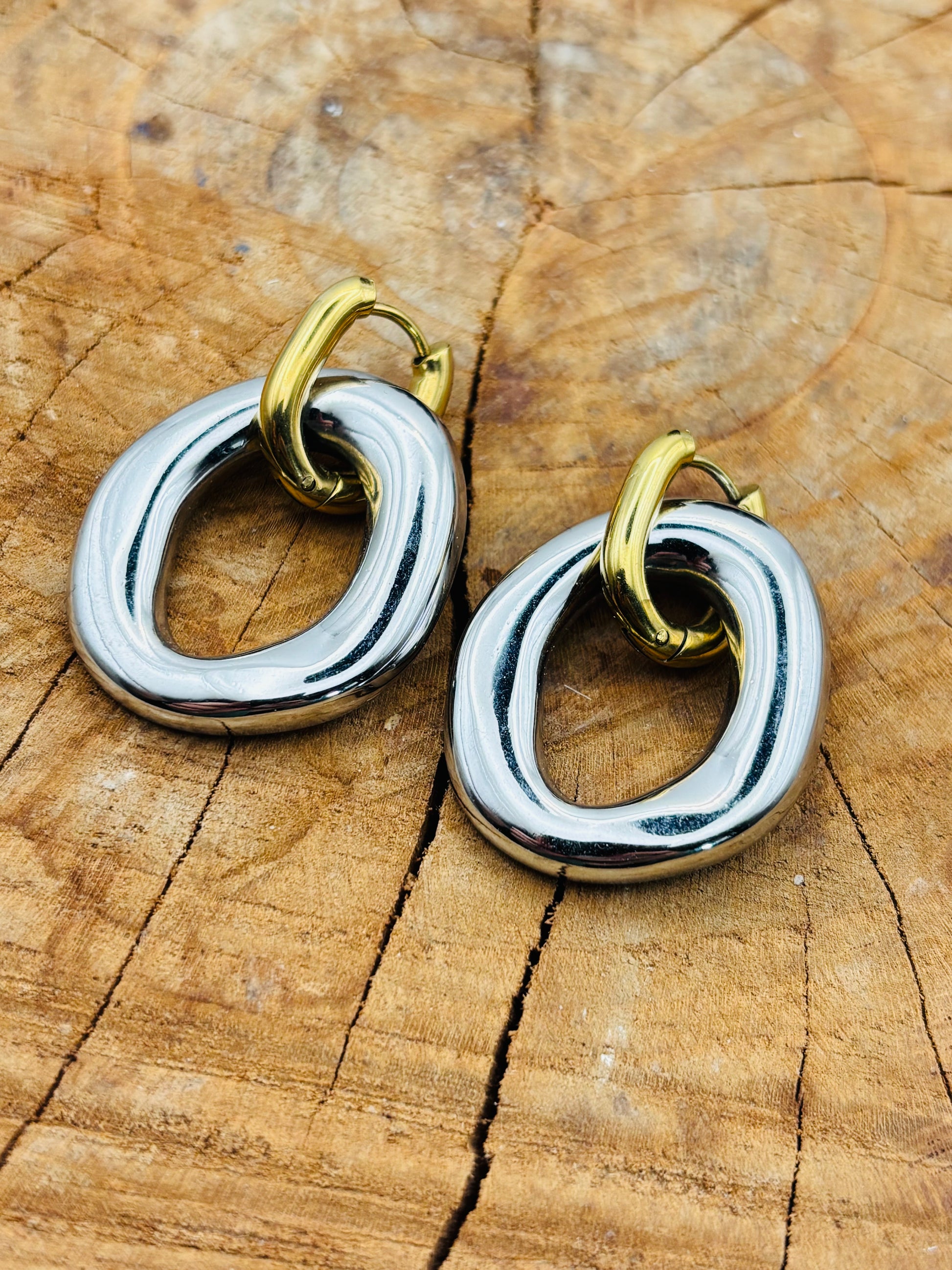 Υπέροχα δίχρωμα κρεμαστά σκουλαρίκια από ατσάλι!
